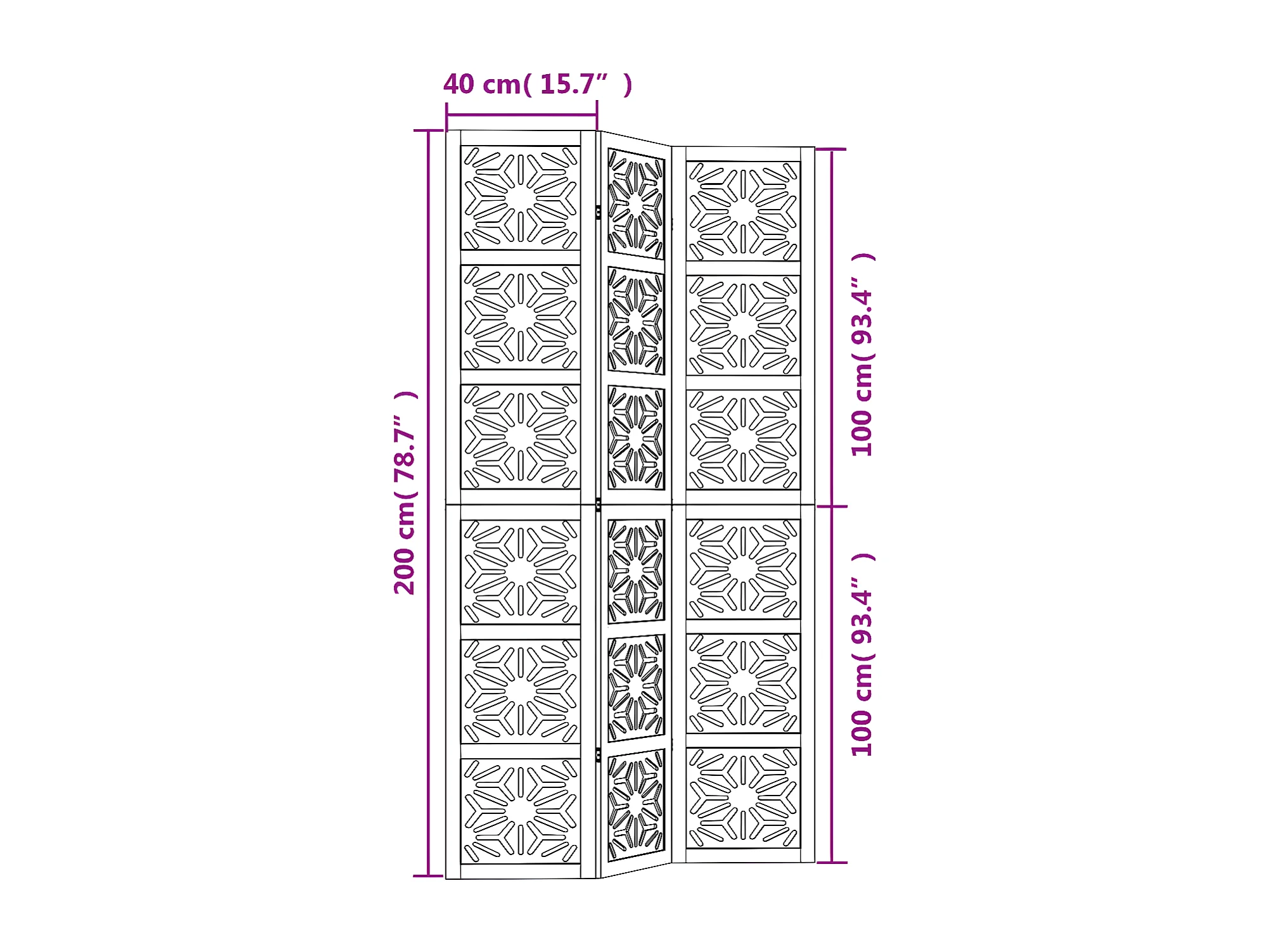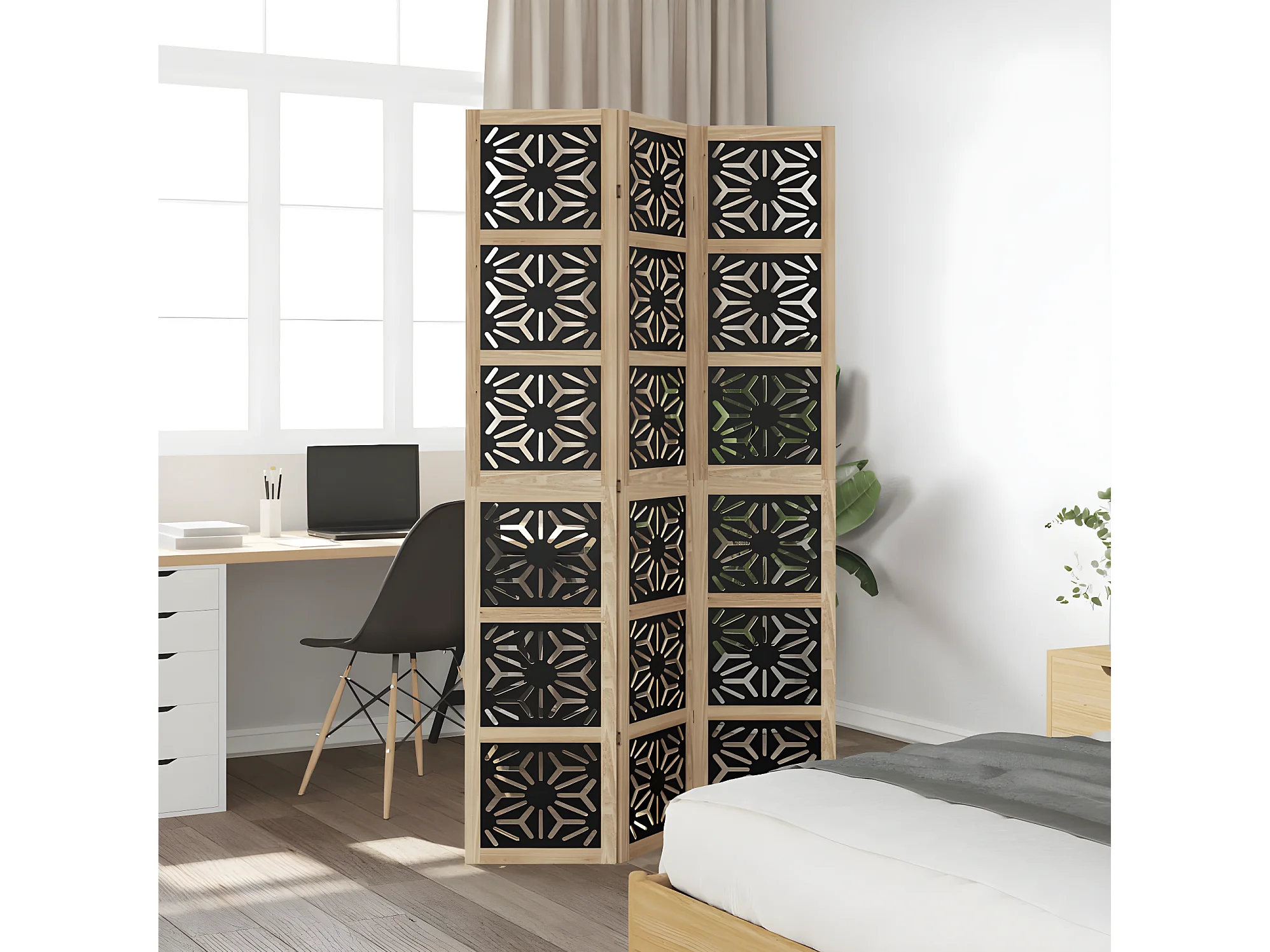 Cloison de séparation 3 panneaux marron noir paulownia massif