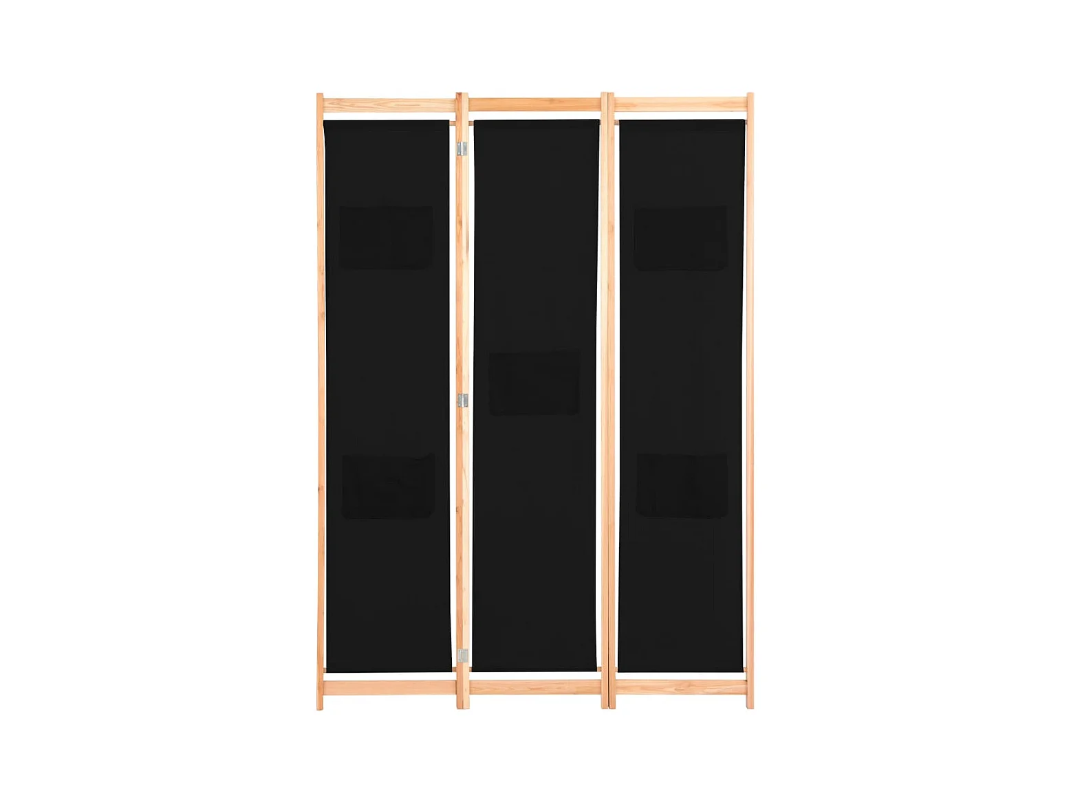 Cloison de séparation 3 panneaux Noir 120x170x4 cm Tissu