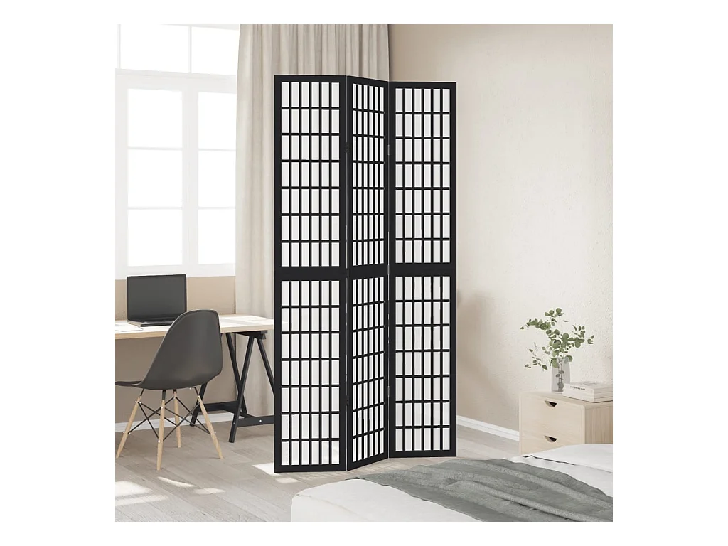 Cloison de séparation pliable 3 panneaux 120x170 cm Noir