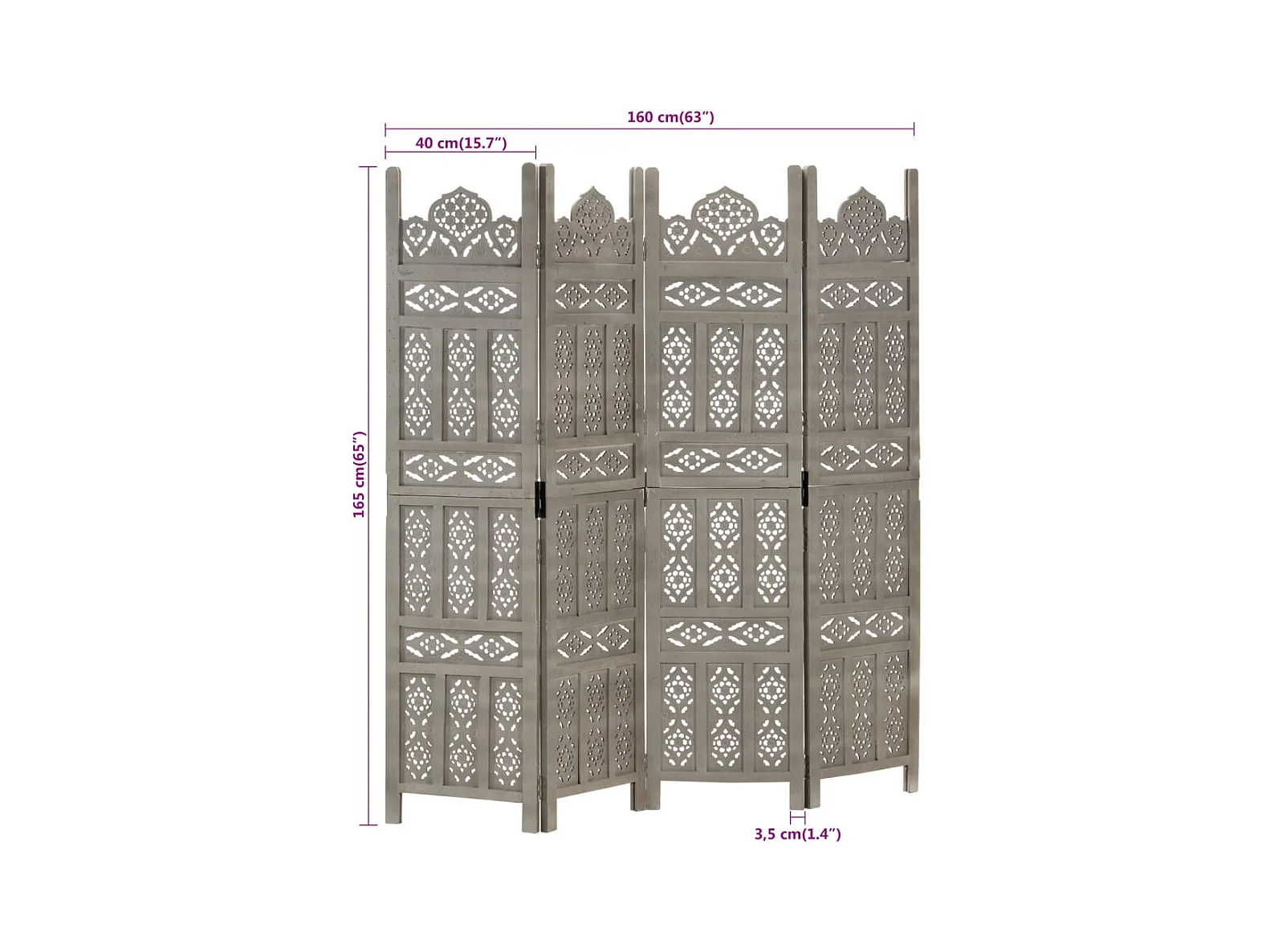 Cloison de séparation 4 panneaux Gris 160x165 cm Bois manguier