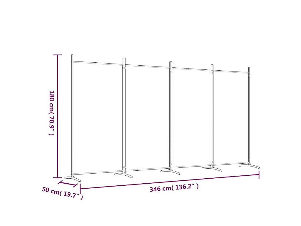 Cloison de séparation 4 panneaux Noir 346x180 cm Tissu