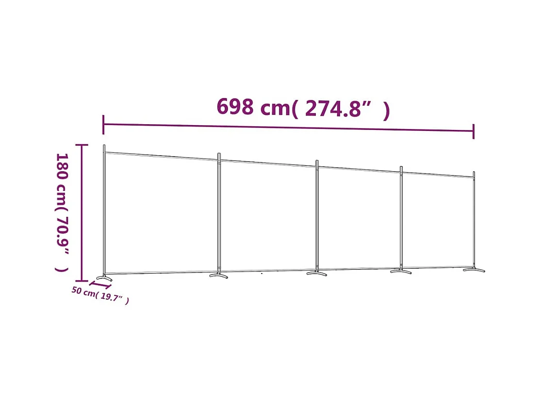Cloison de séparation 4 panneaux Noir 698x180 cm Tissu