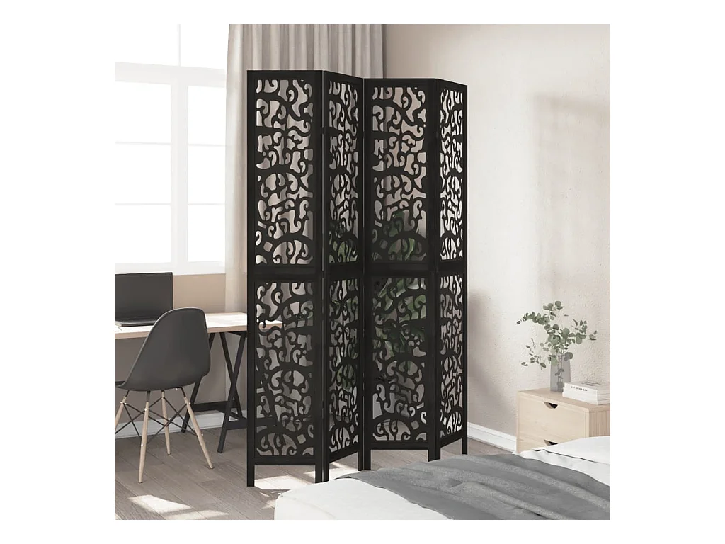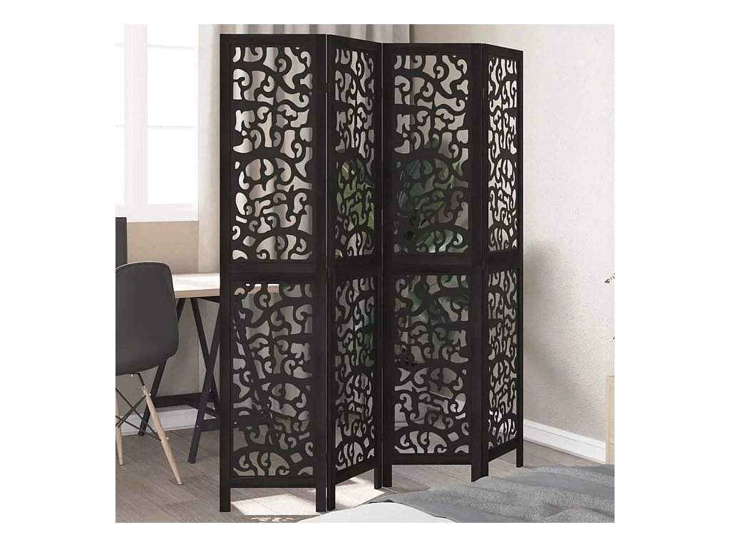 Cloison de séparation 4 panneaux noir bois de paulownia massif