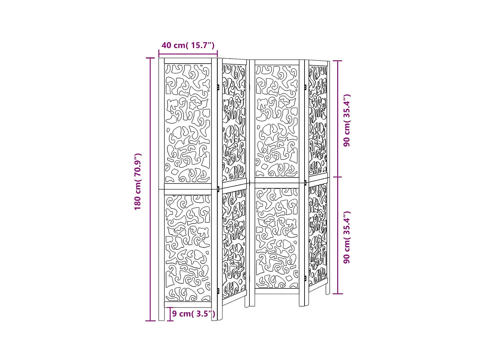 Cloison de séparation à 4 panneaux/treillis bois sapin massif
