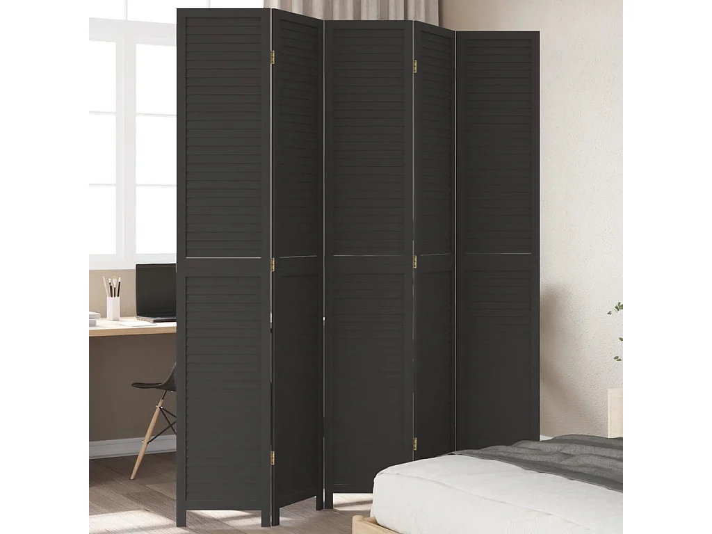 Cloison de séparation 5 panneaux noir bois de paulownia massif