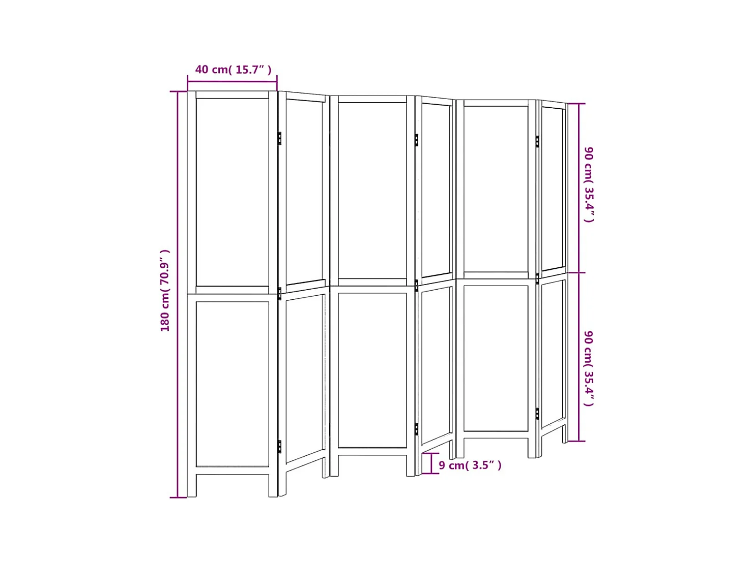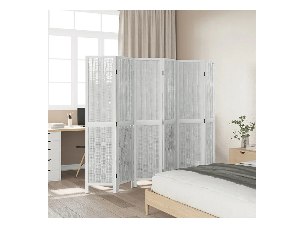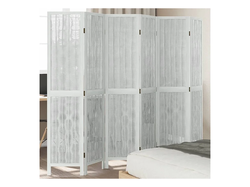 Cloison de séparation 6 panneaux blanc bois de paulownia massif