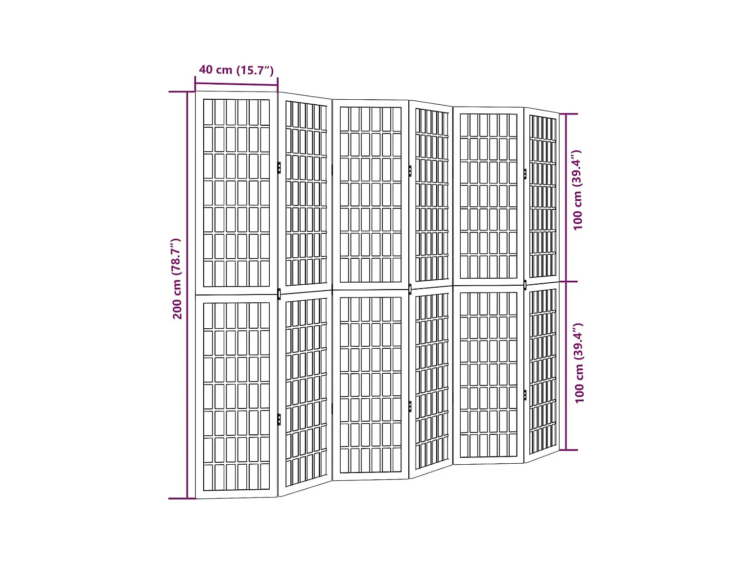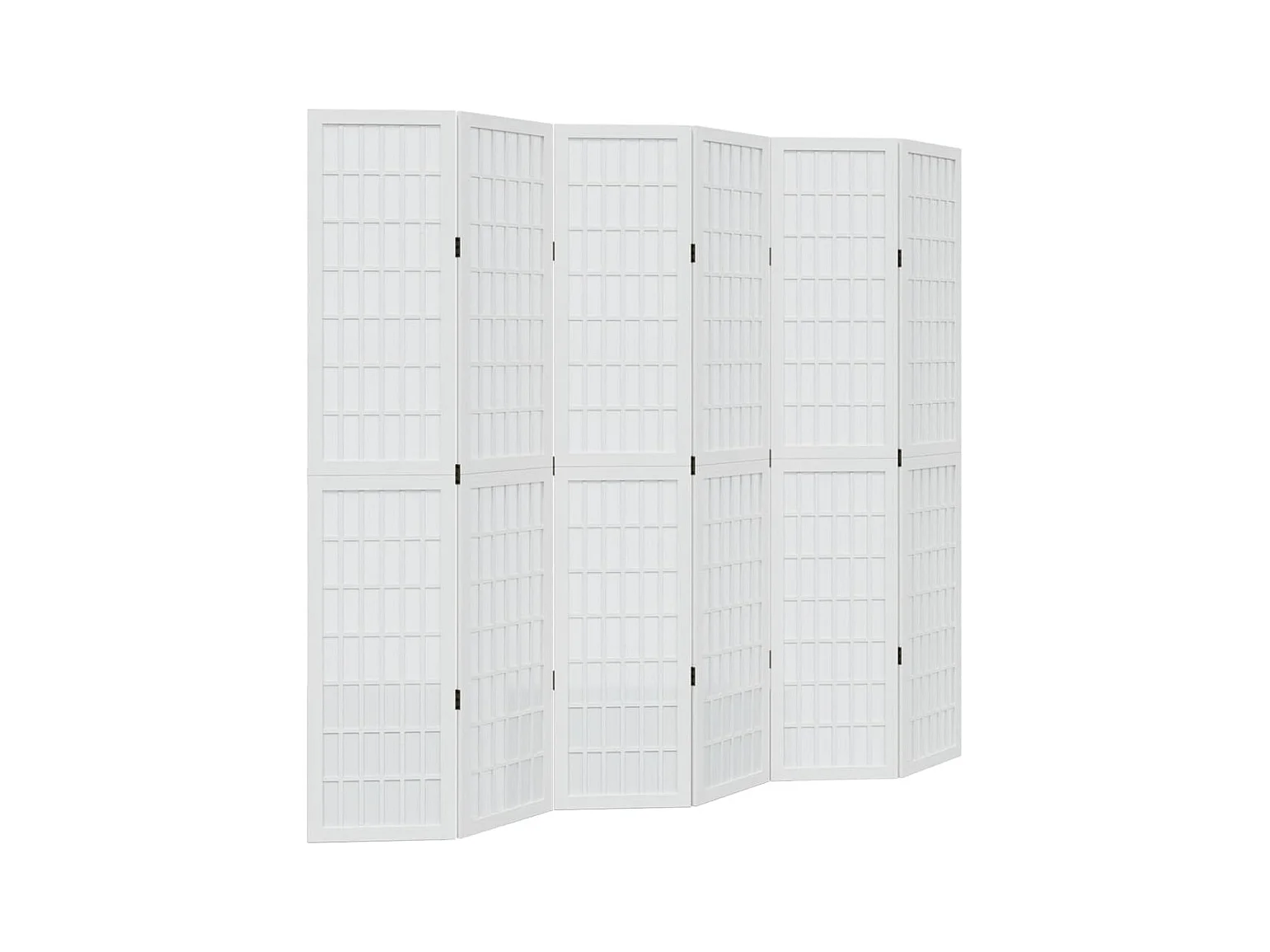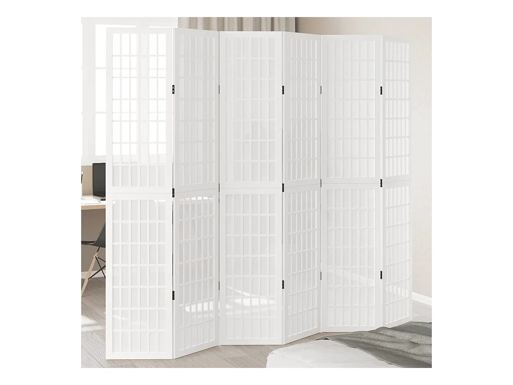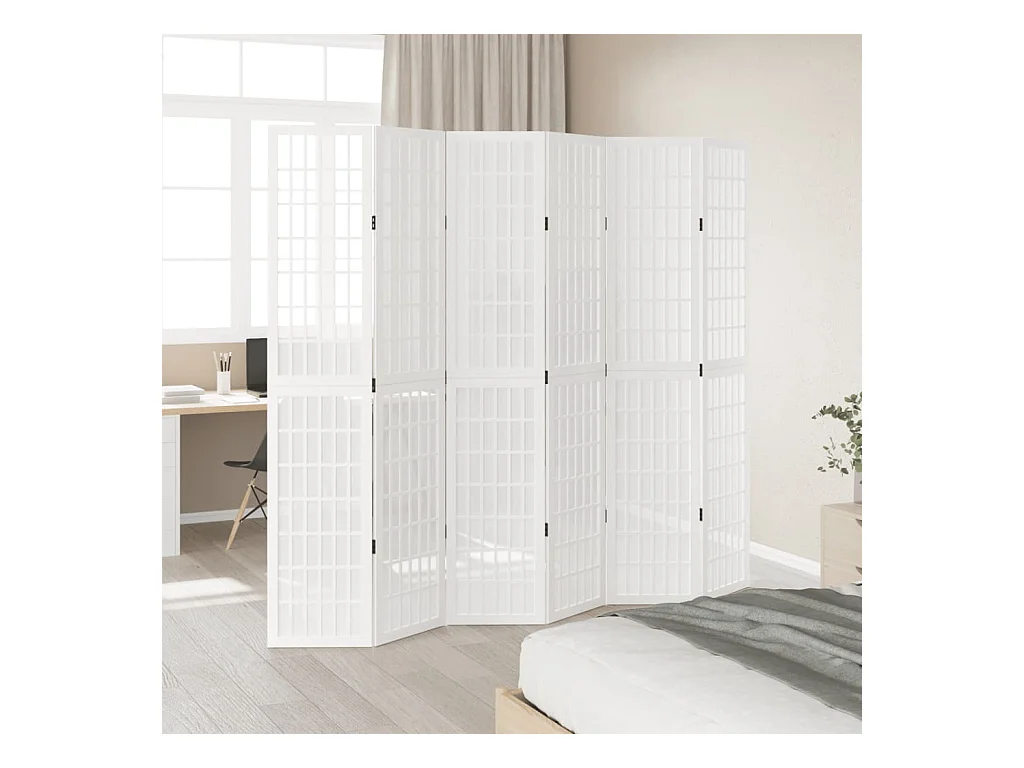 Cloison de séparation 6 panneaux blanc bois de paulownia massif