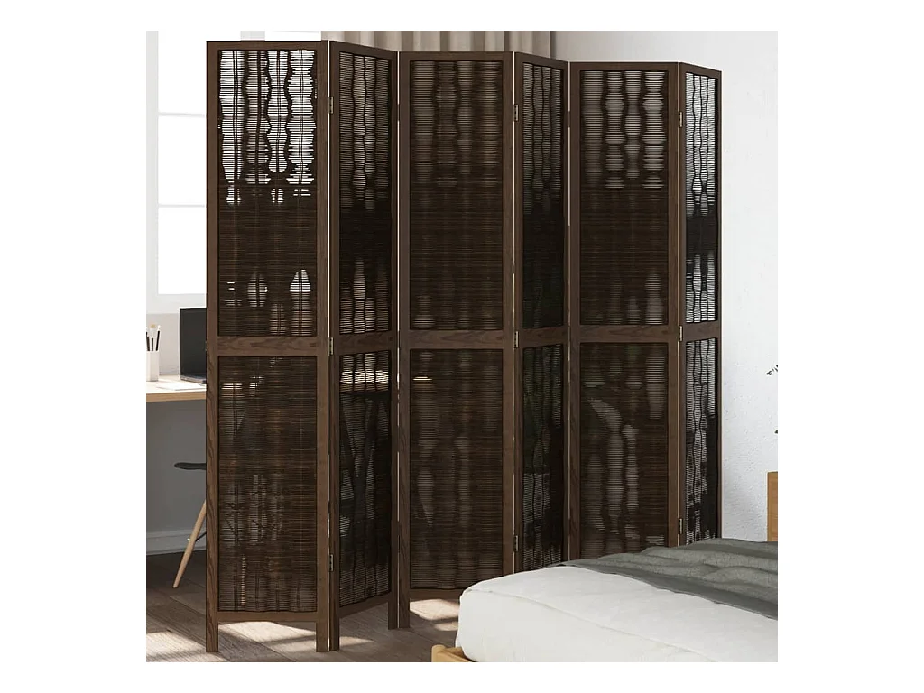 Cloison de séparation 6 panneaux marron résine tressée
