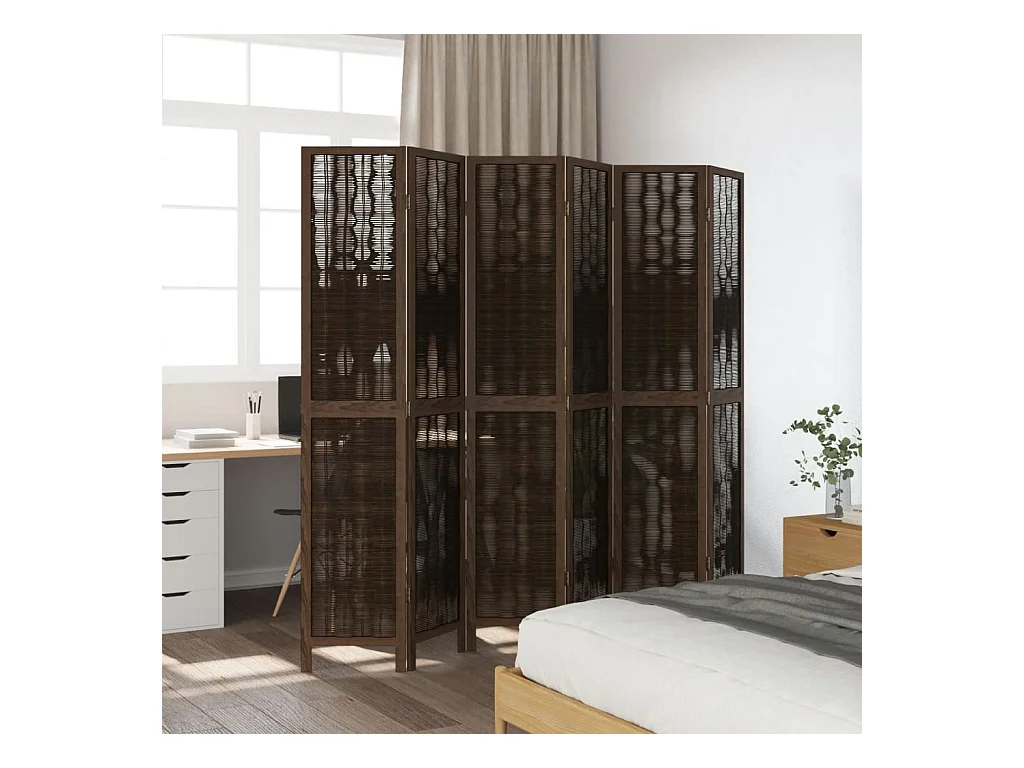 Cloison de séparation 6 panneaux marron foncé paulownia massif