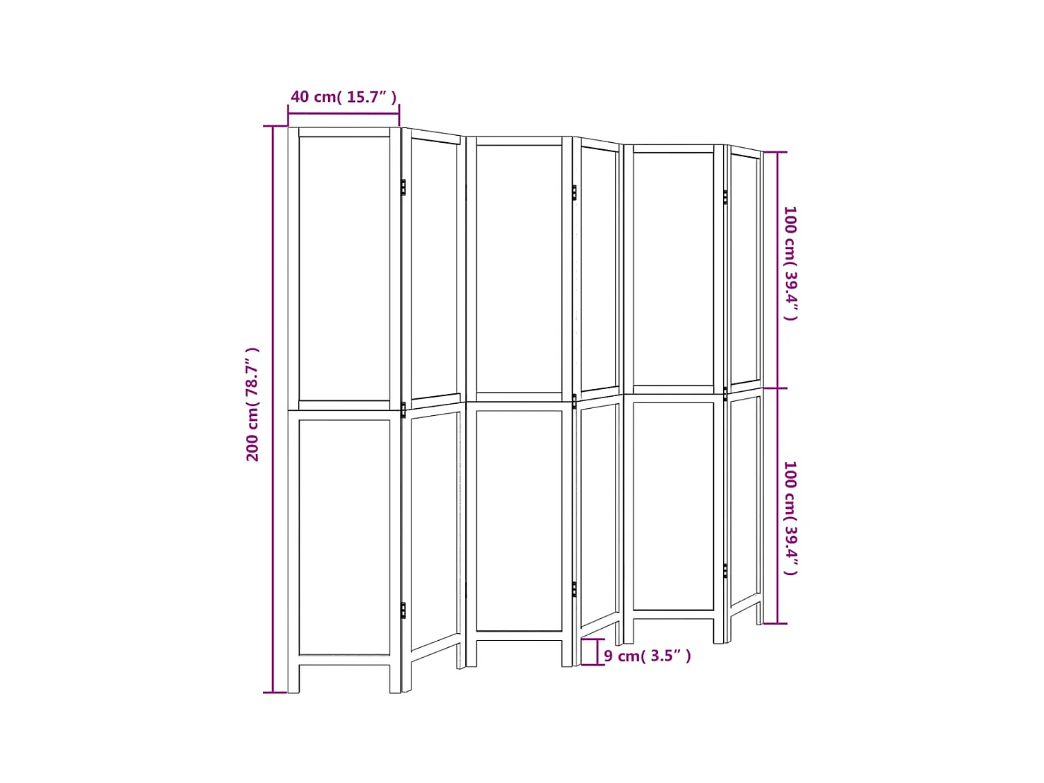 Cloison de séparation 6 panneaux marron bois paulownia massif