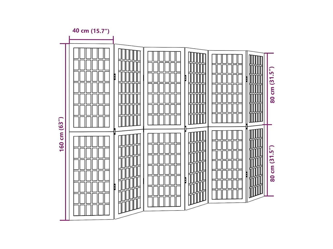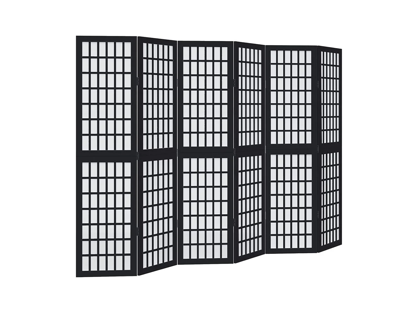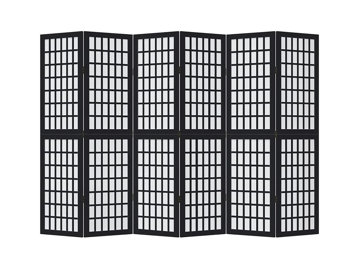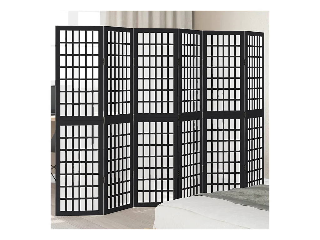 Cloison de séparation 6 panneaux noir bois de paulownia massif
