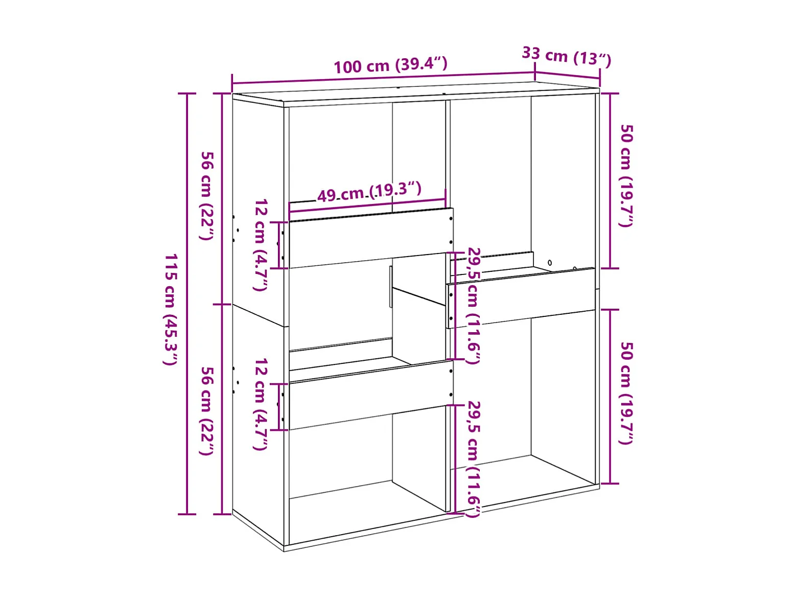 Bibliothèque/Séparateur de pièce chêne fumé 100x30x72 cm