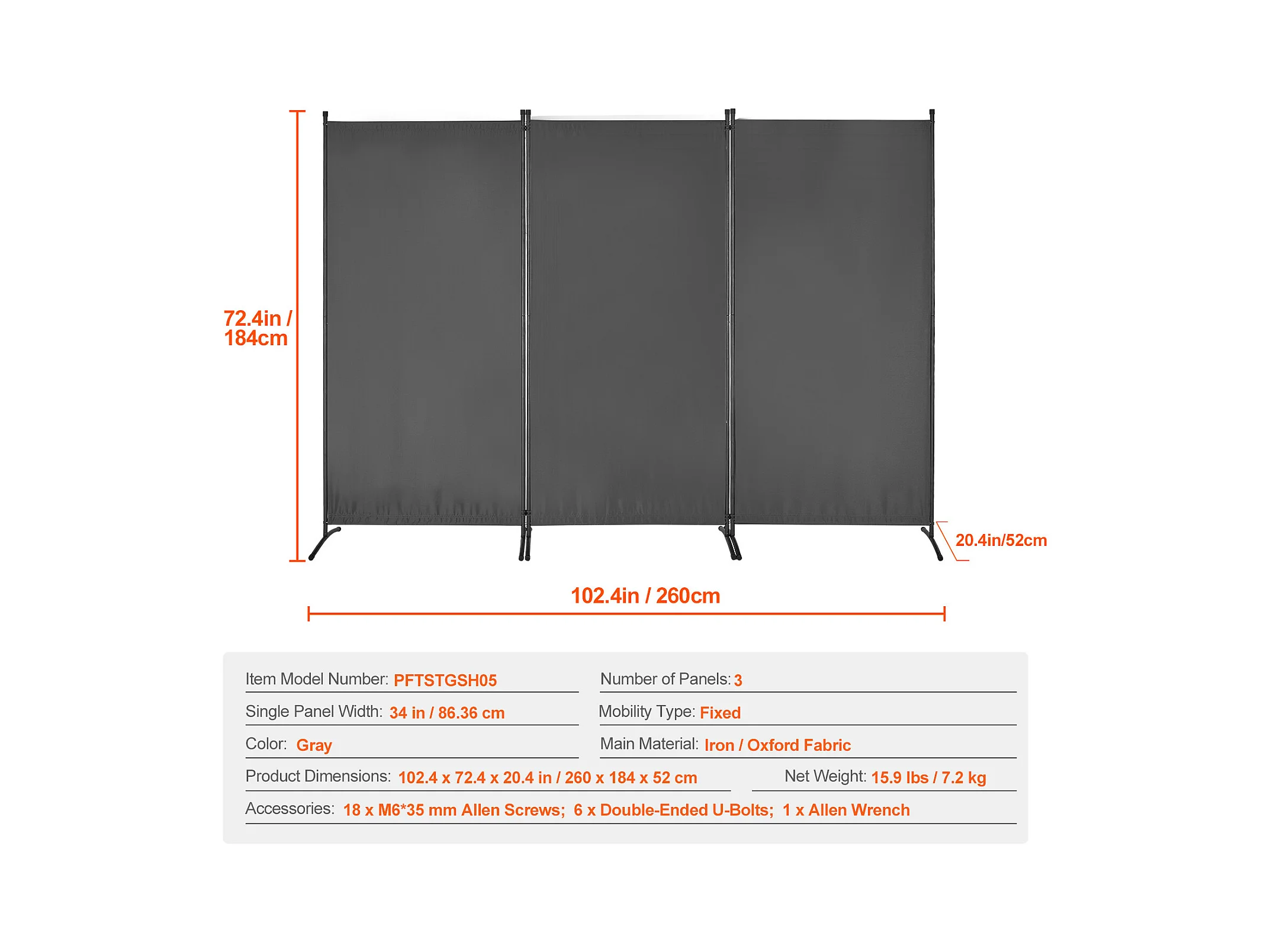Paravent 3 panneaux Anthracite 260x180 cm WVGQ5620