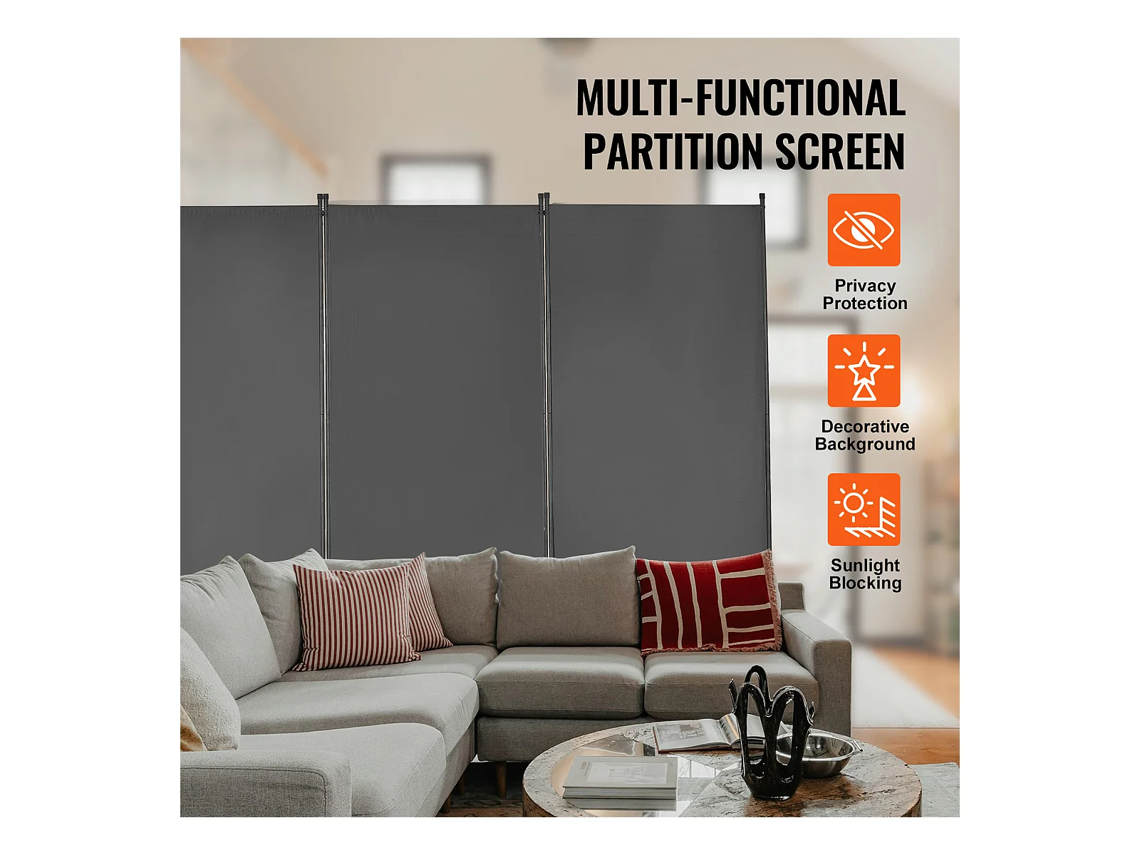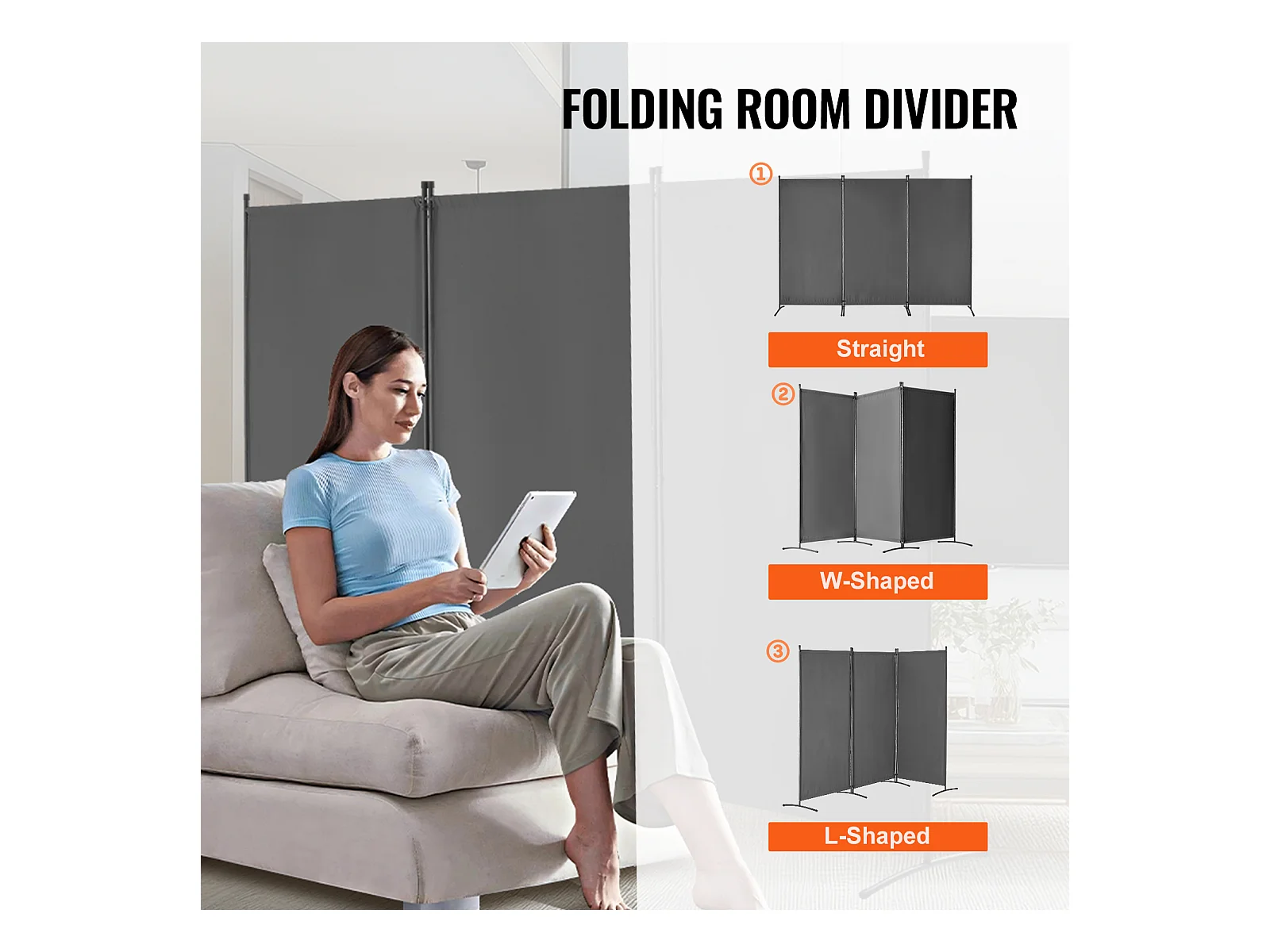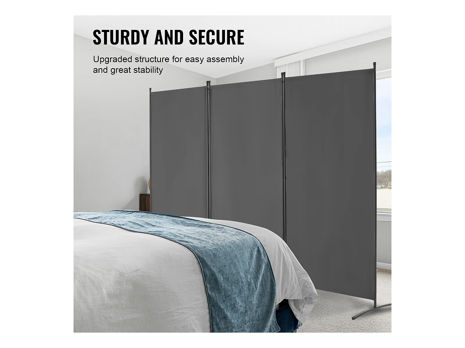 Cloison de Séparation SucceBuy Séparateur de Pièce à 3 Panneaux, Paravent de Confidentialité Pliable, Cloison Portable pour Bureau, Chambre à Coucher, Bureau, Gris