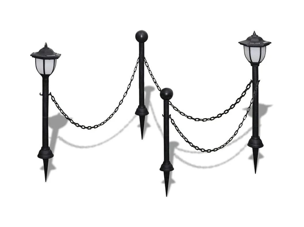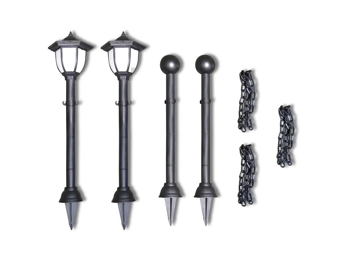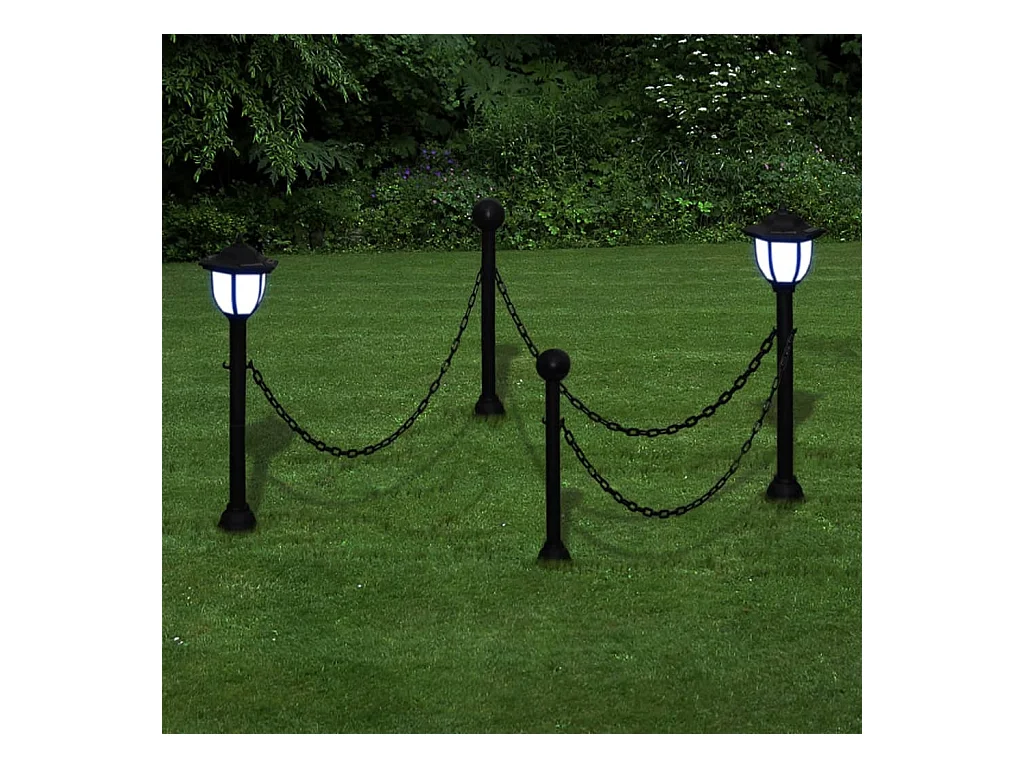 Clôture à chaîne avec deux lampes solaires LED et deux piquets FR990187
