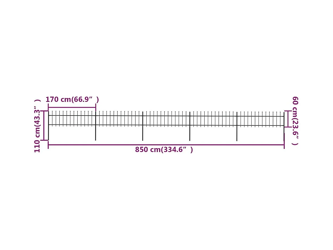 Clôture de jardin avec dessus en lance Acier 8,5 x 0,6 m Noir FR514990
