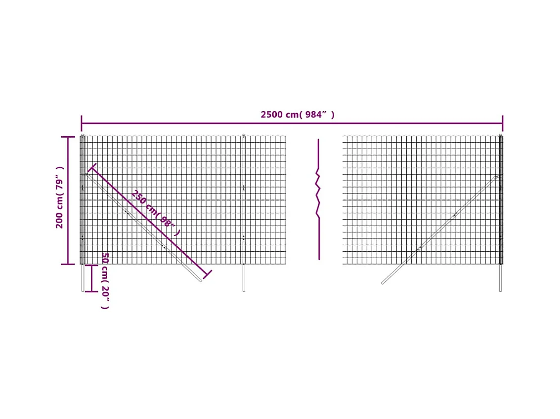 Clôture en treillis métallique et ancrage anthracite 2x25 m FR852007
