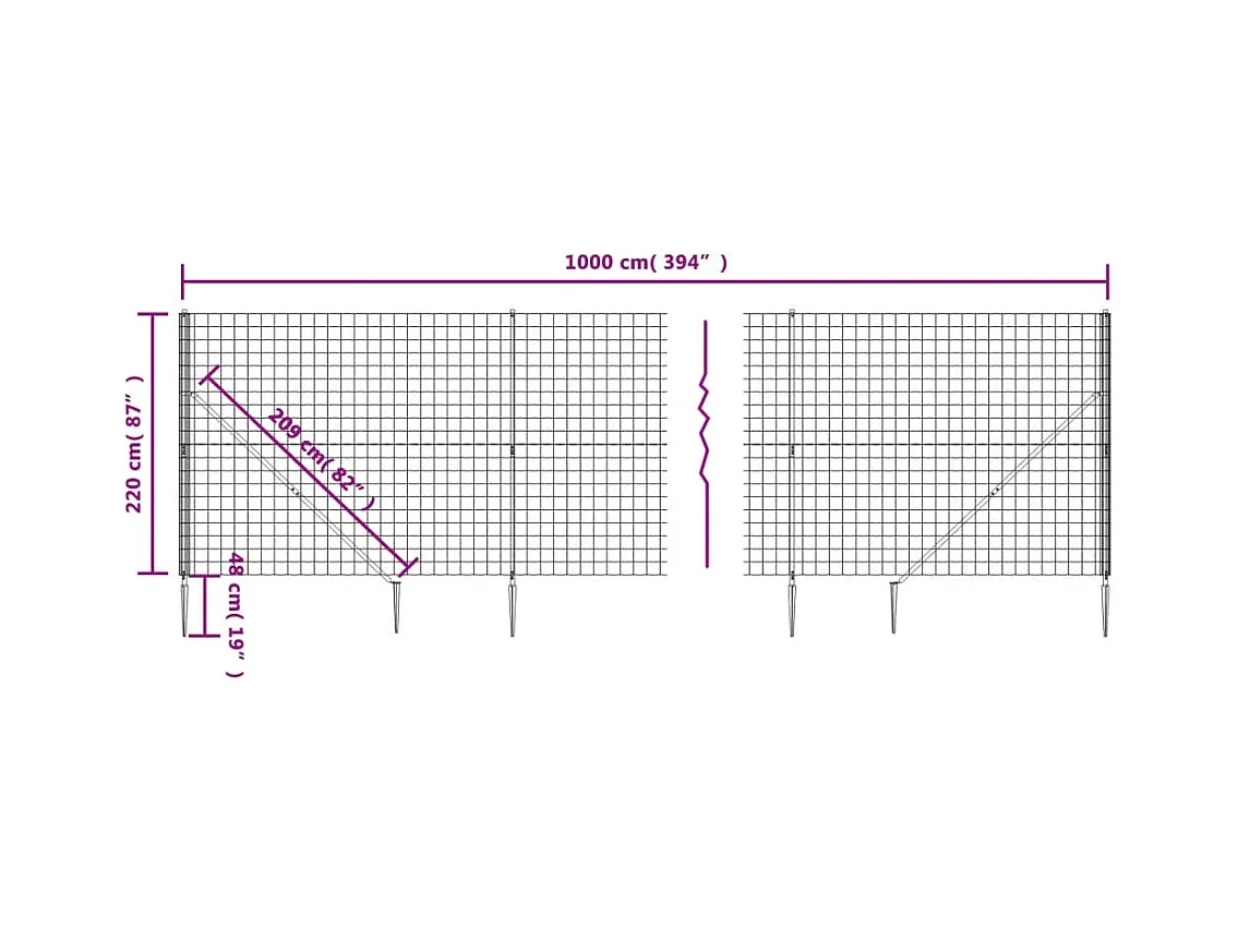 Clôture en treillis métallique et piquet d'ancrage vert 2,2x10m FR605127