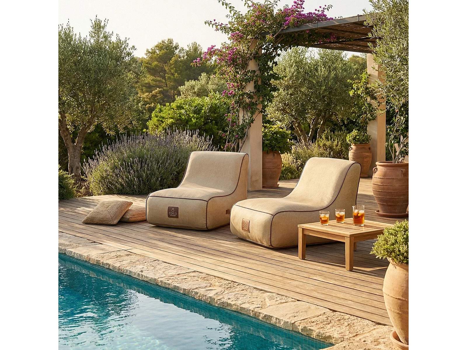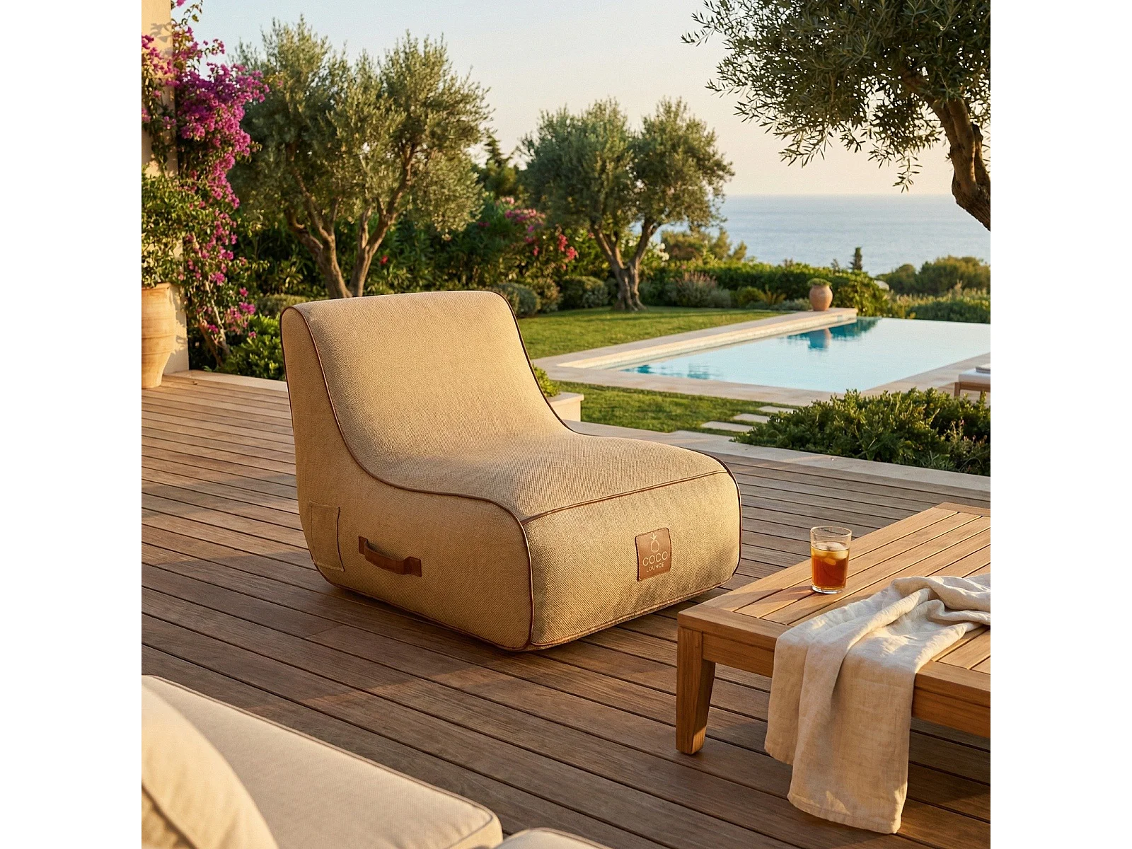 Coco Lounge Fauteuil de jardin gonflable RIVIERA ambiance Boho couleur toile de jute