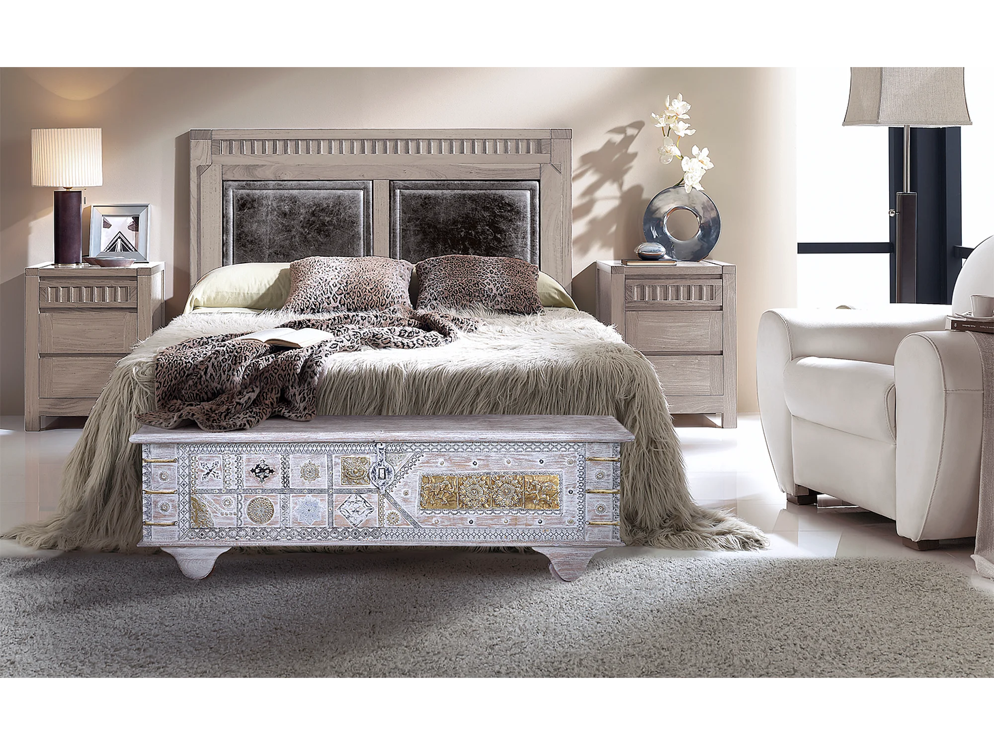 Coffre ancien en bois de manguier blanc