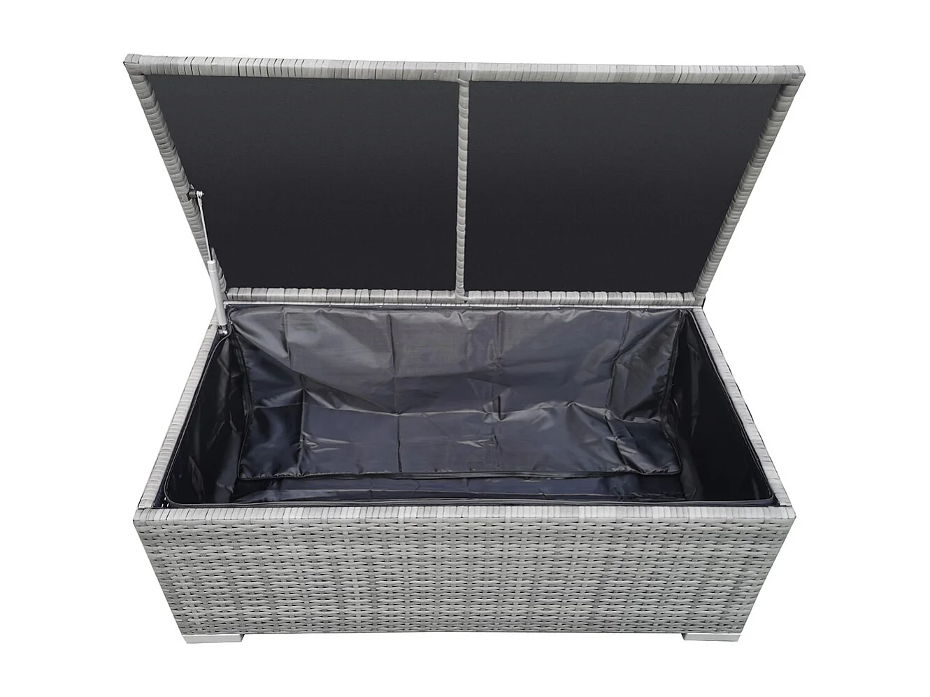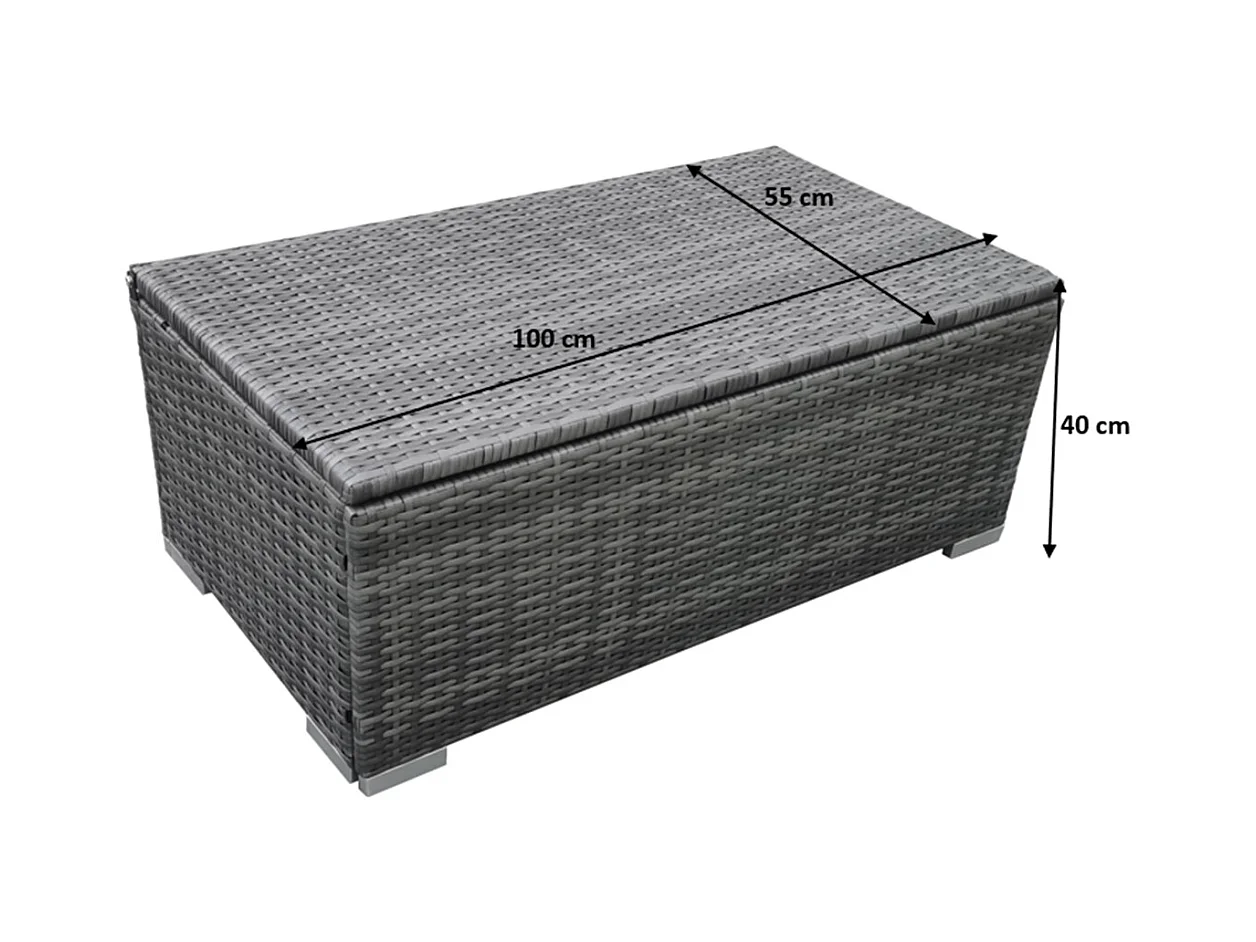 Salon de jardin en résine tressée 4 places avec coffre gris clair SILANG