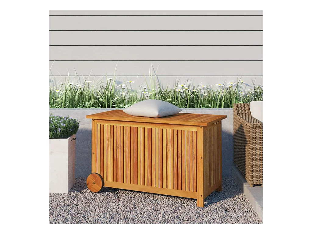 Coffre de rangement de jardin avec roues 113x50x58cm Bois acacia FR543669