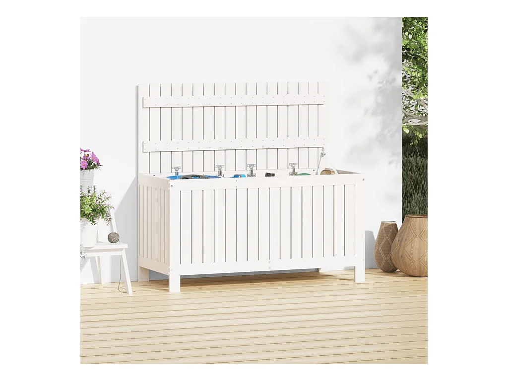 Reinald Boîte de rangement de jardin blanc bois massif de sapin