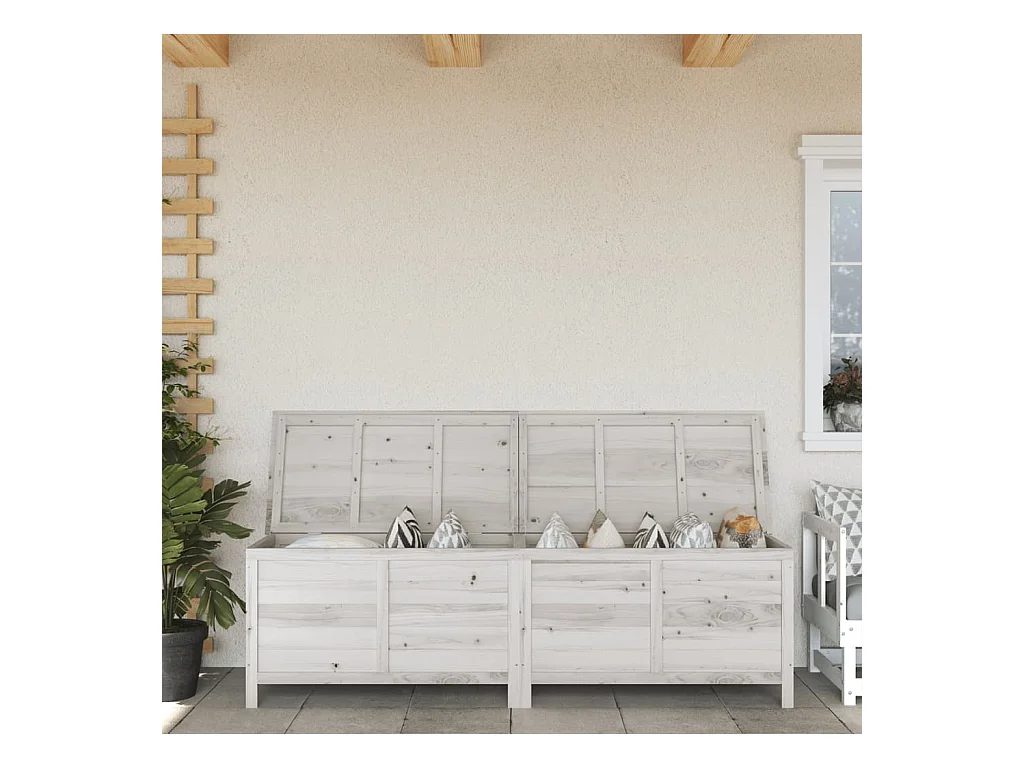 Coffre de rangement de jardin blanc bois massif de sapin FR307575