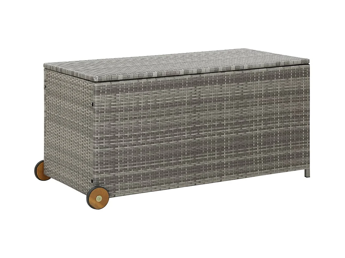 Boîte de rangement de jardin gris résine tressée bois d'acacia