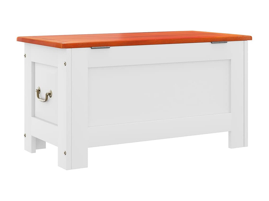 Coffre de rangement et couvercle marron et blanc bois d'acacia