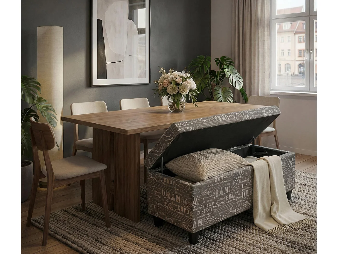 Coffre de rangement Kriens, gris words fabric