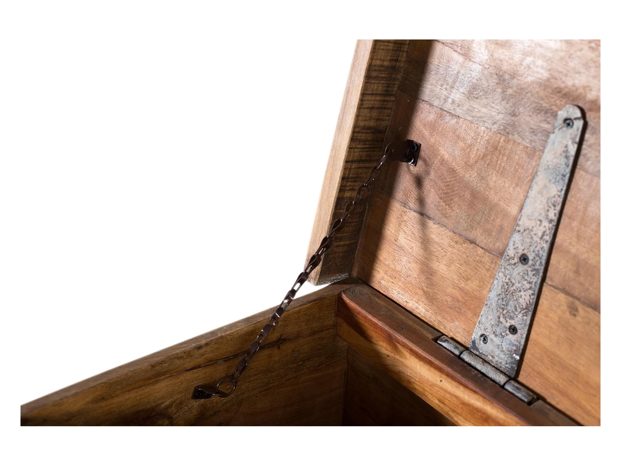 Coffre en manguier et pieds en métal blanc vieilli