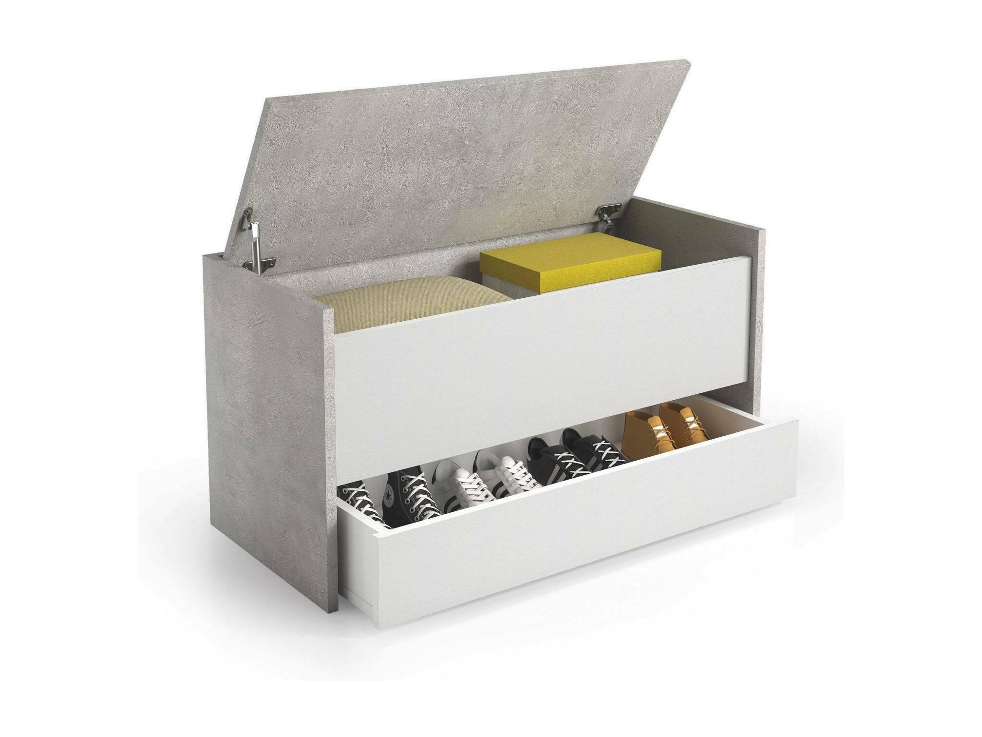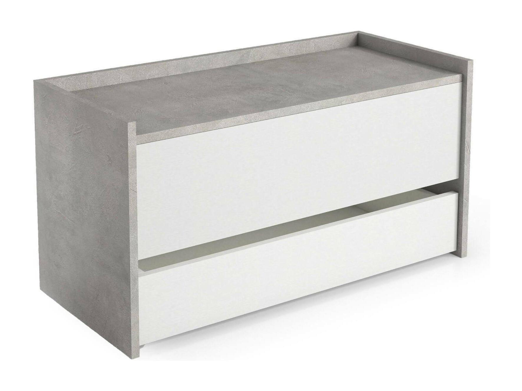 Commode Dgaiard, Meuble d'entrée moderne avec étagère à chaussures, Coffre avec deux conteneurs, 100% Made in Italy, 90x40h46 cm, Blanc et Ciment