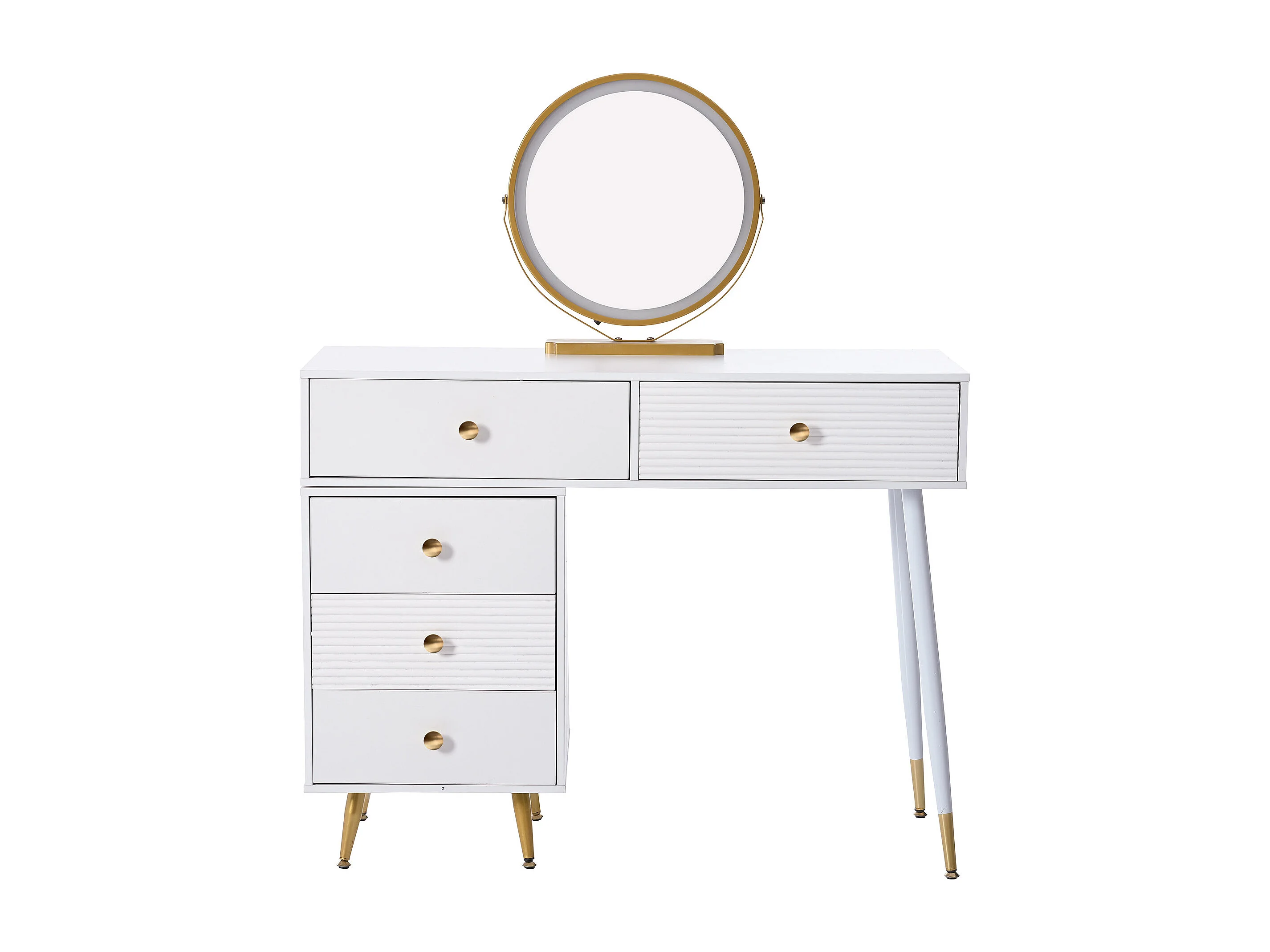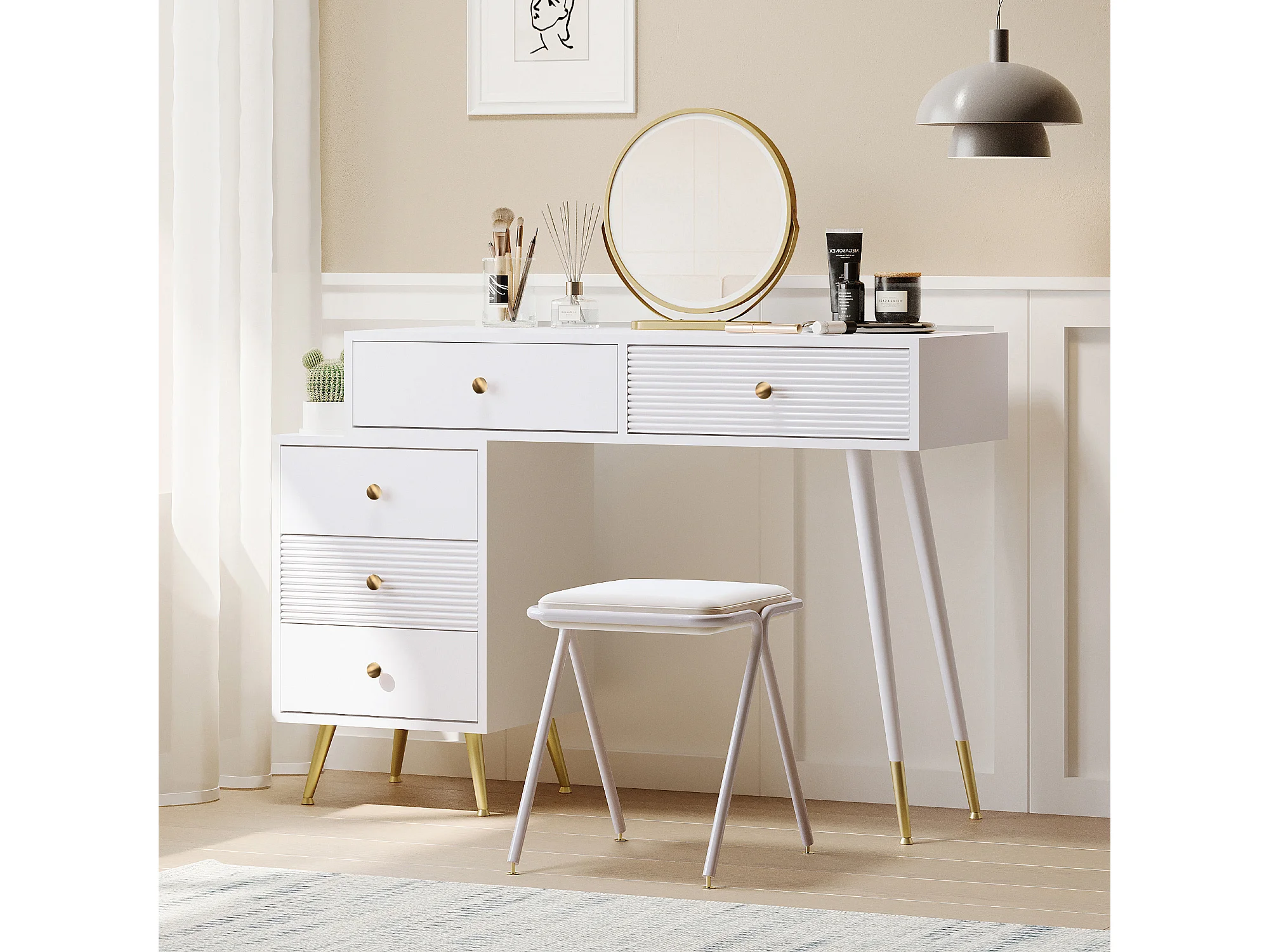Coiffeuse avec 5 tiroirs, conception d'échange, style minimaliste, 90x40x73,5cm, Blanc (sans miroir et tabouret)