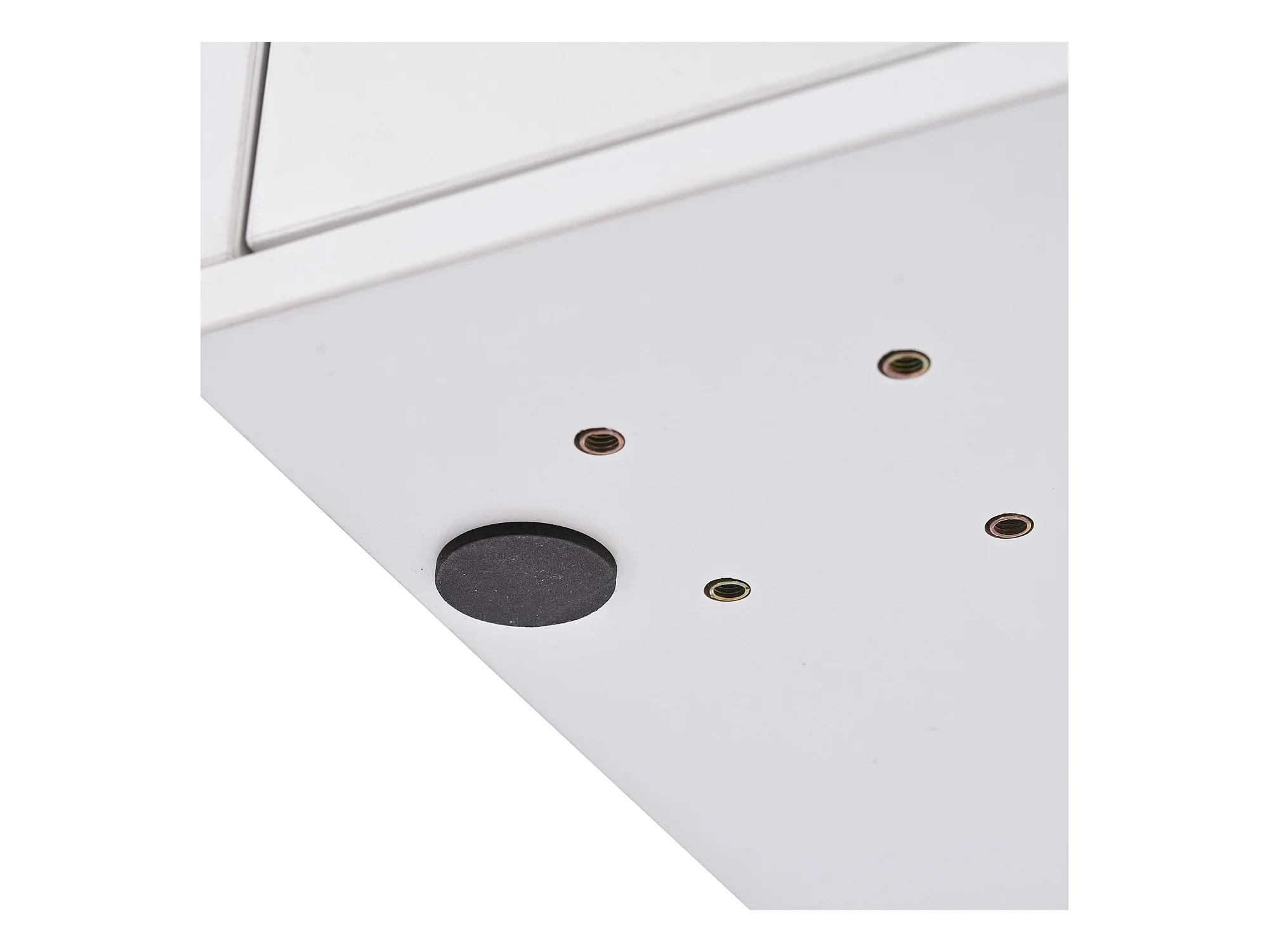Coiffeuse en verre avec miroir, étagères et prises électriques – Design moderne blanc
