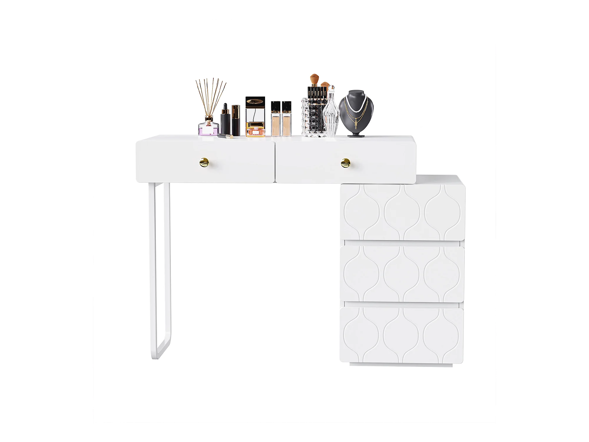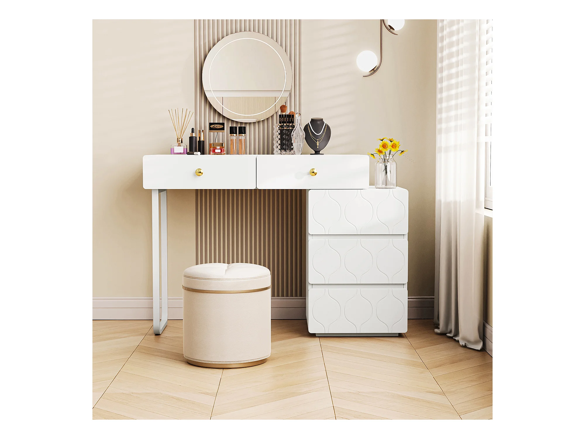 Coiffeuse,5 tiroirs,sans miroir ni tabouret,caisson et pieds interchangeables gauche