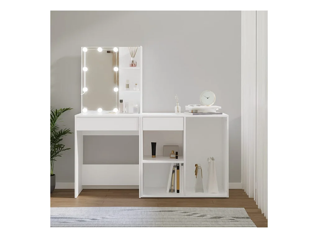 Coiffeuse à LED avec 2 armoires Blanc Bois d'ingénierie FR84963