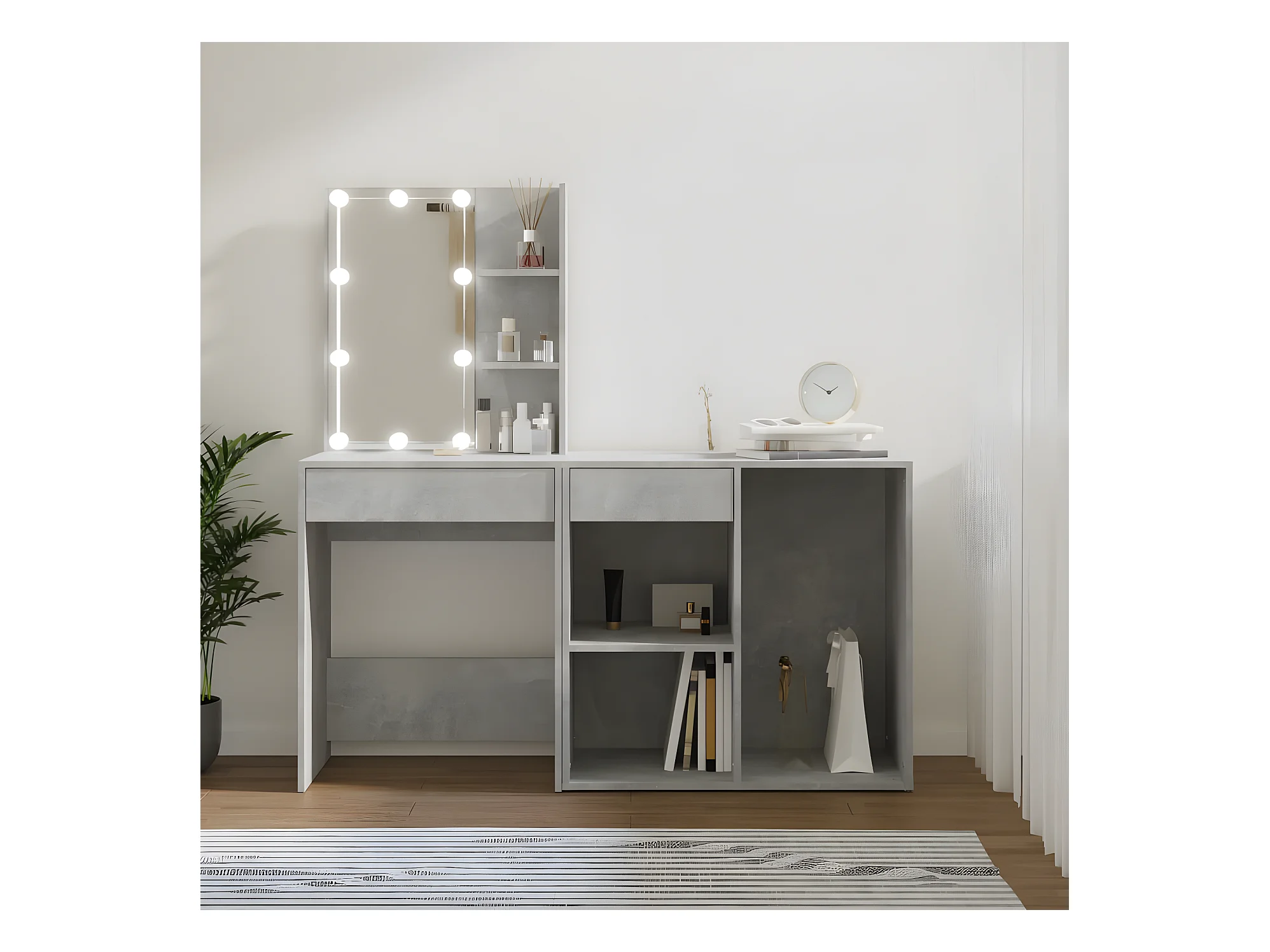 Coiffeuse avec LED gris béton 100x40x130 cm FR266358