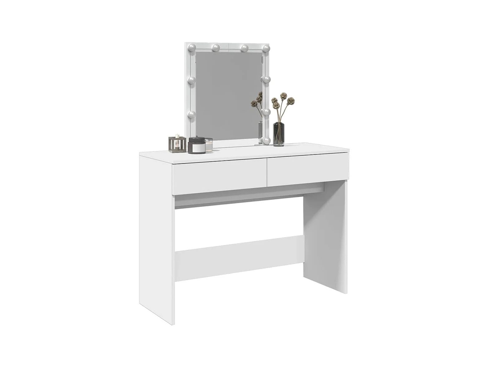 Table de maquillage moderne blanche avec éclairage LED réglable - Table de maquillage avec miroir, 2 tiroirs