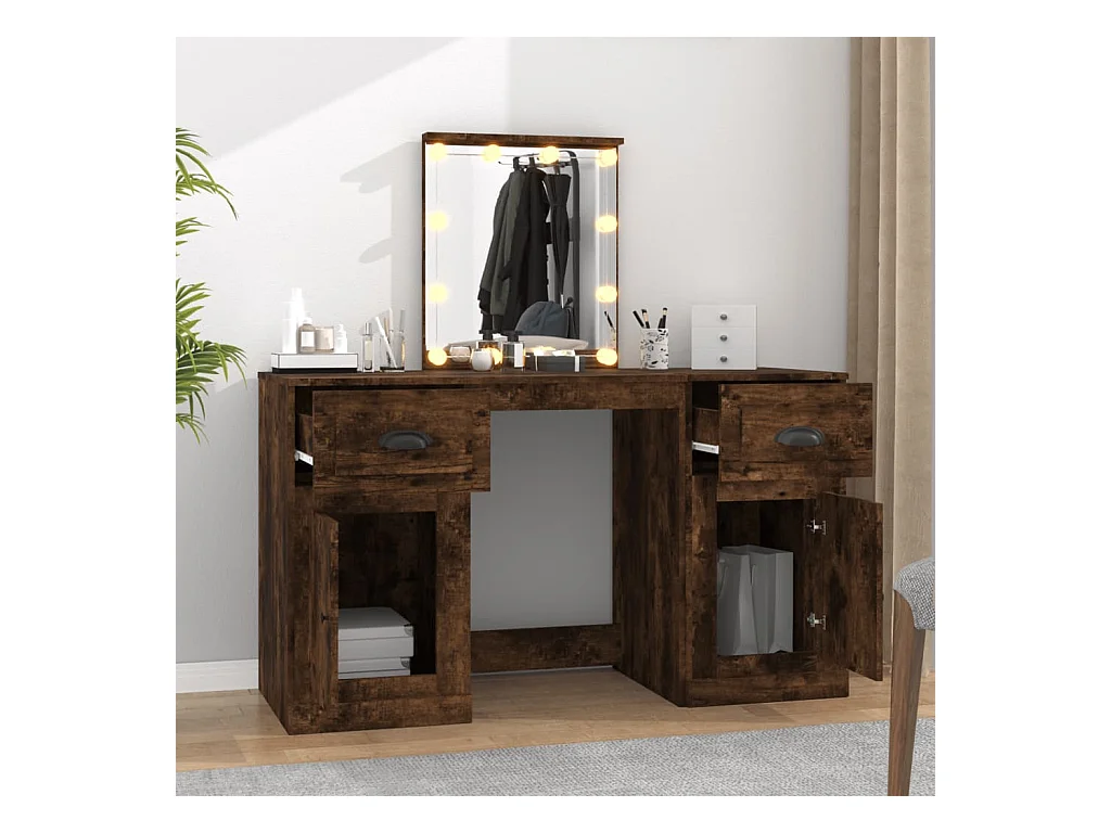 Coiffeuse avec LED chêne fumé 130x50x132,5 cm