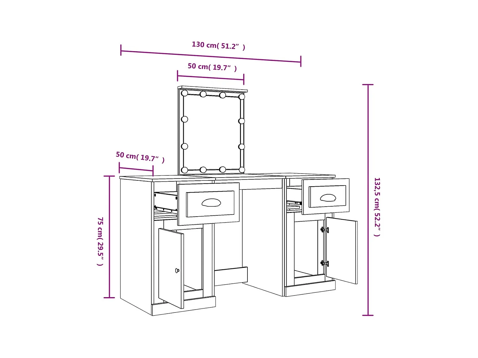 Coiffeuse avec LED chêne sonoma 130x50x132,5 cm