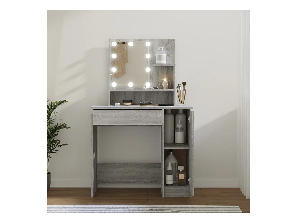 Coiffeuse avec LED Sonoma gris 86,5x35x136 cm FR228413