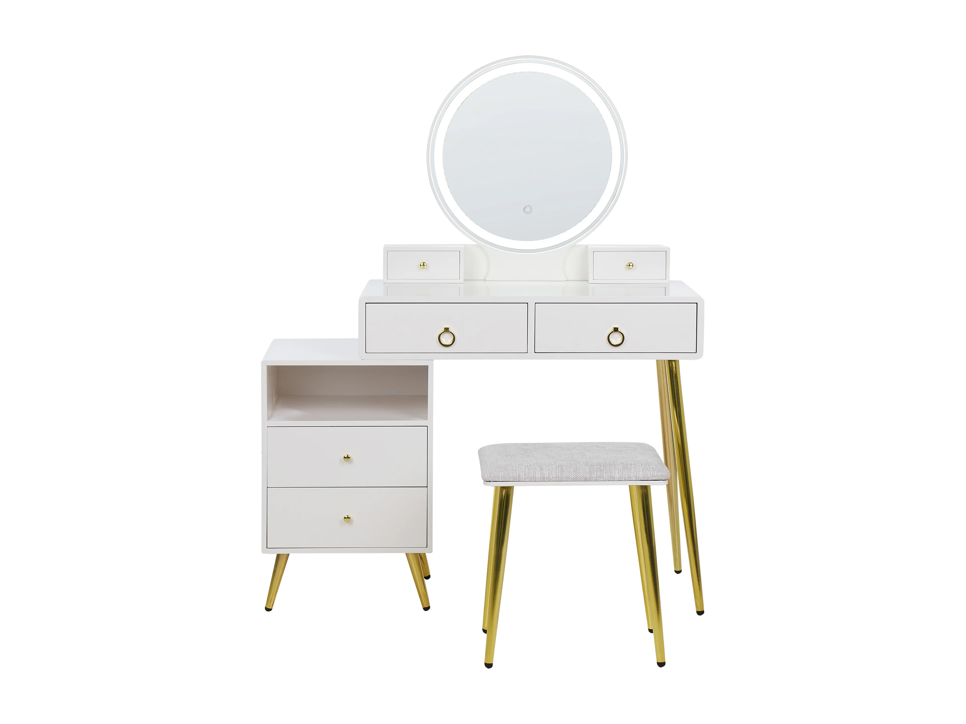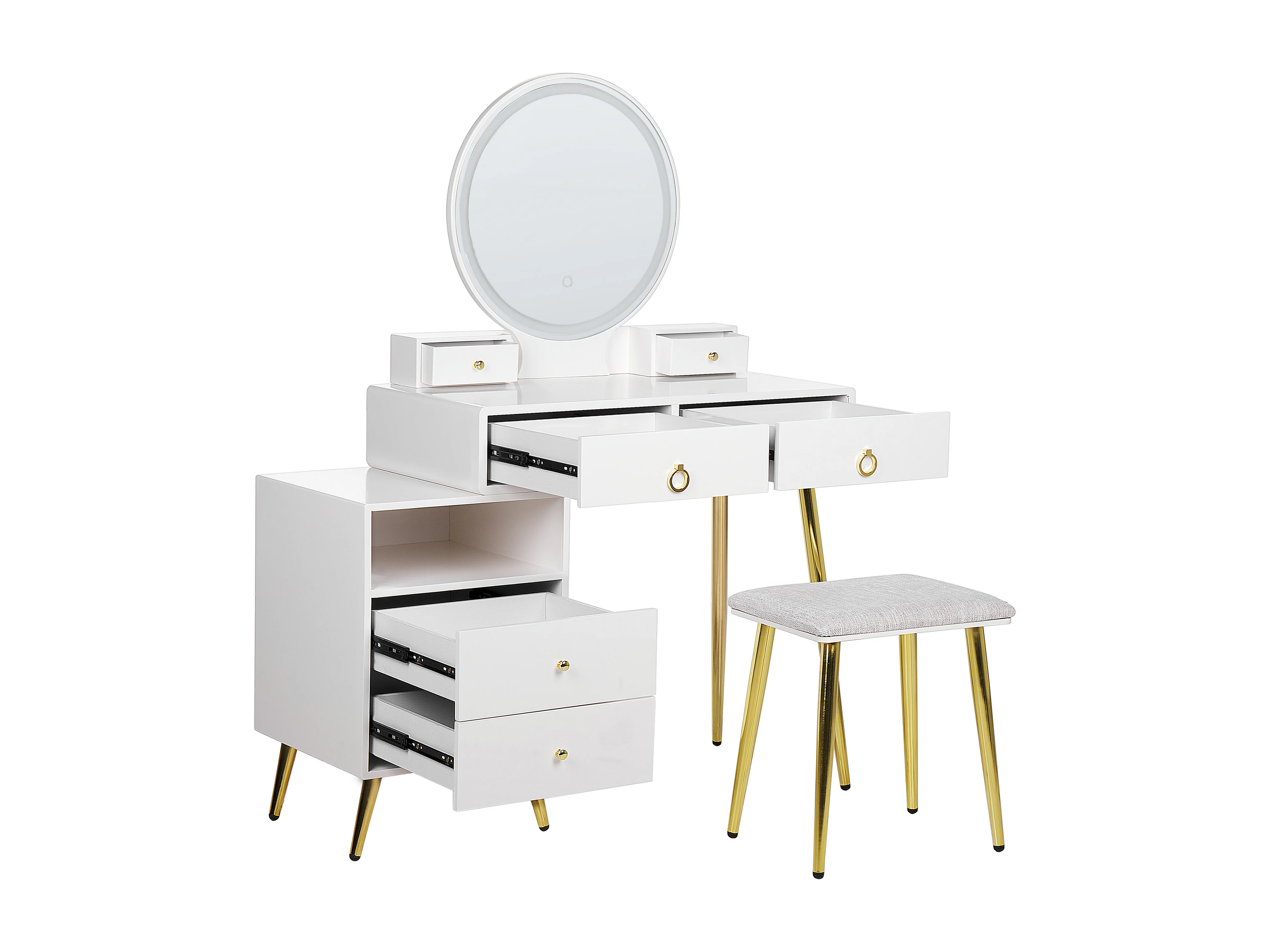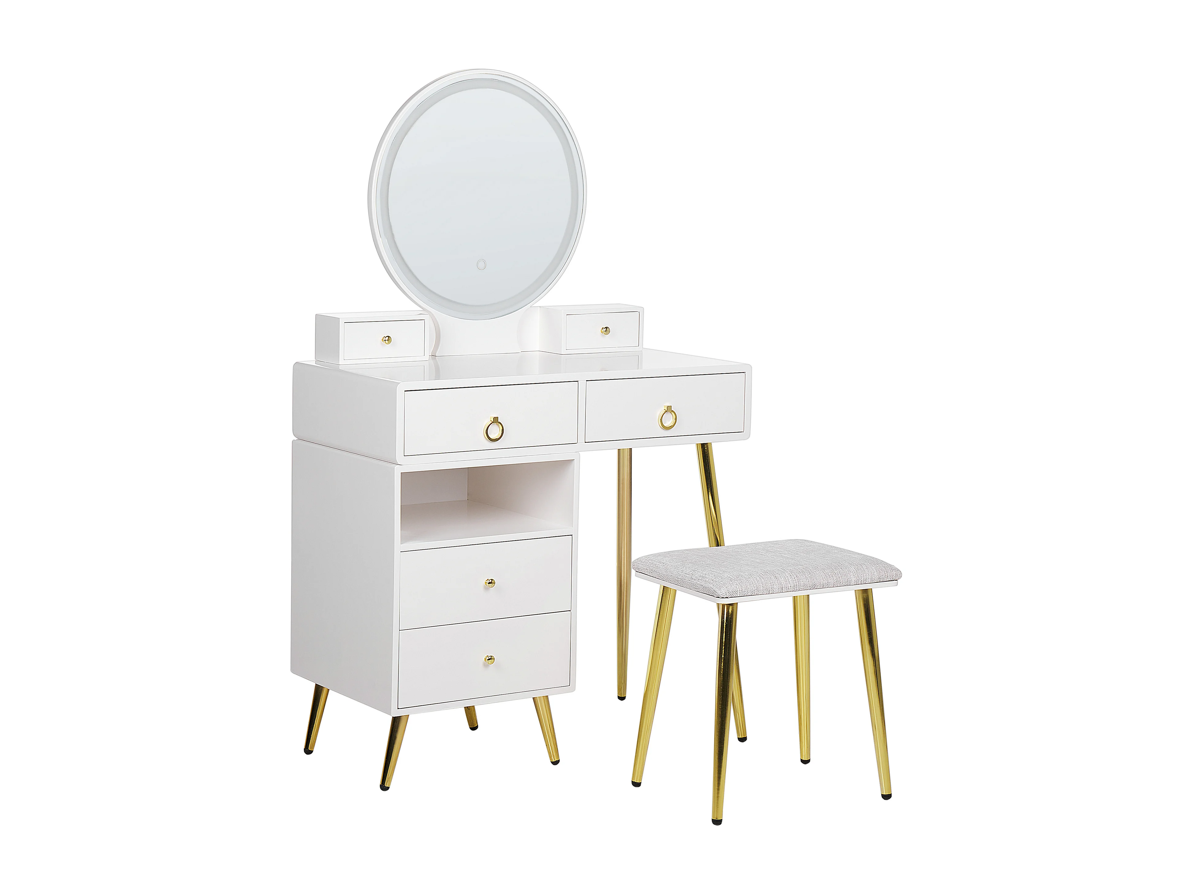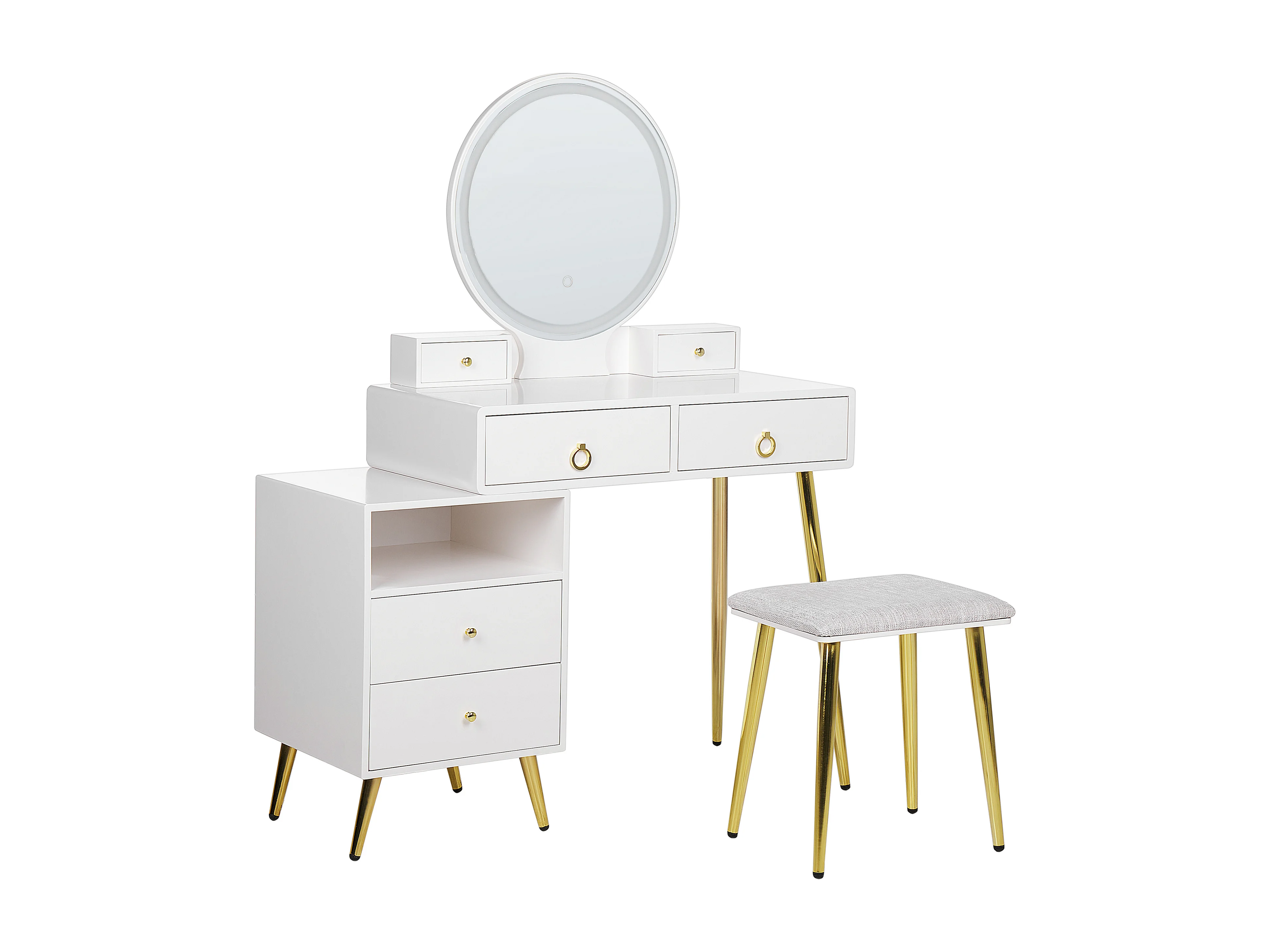 Coiffeuse avec miroir et tabouret YVES LED Blanc