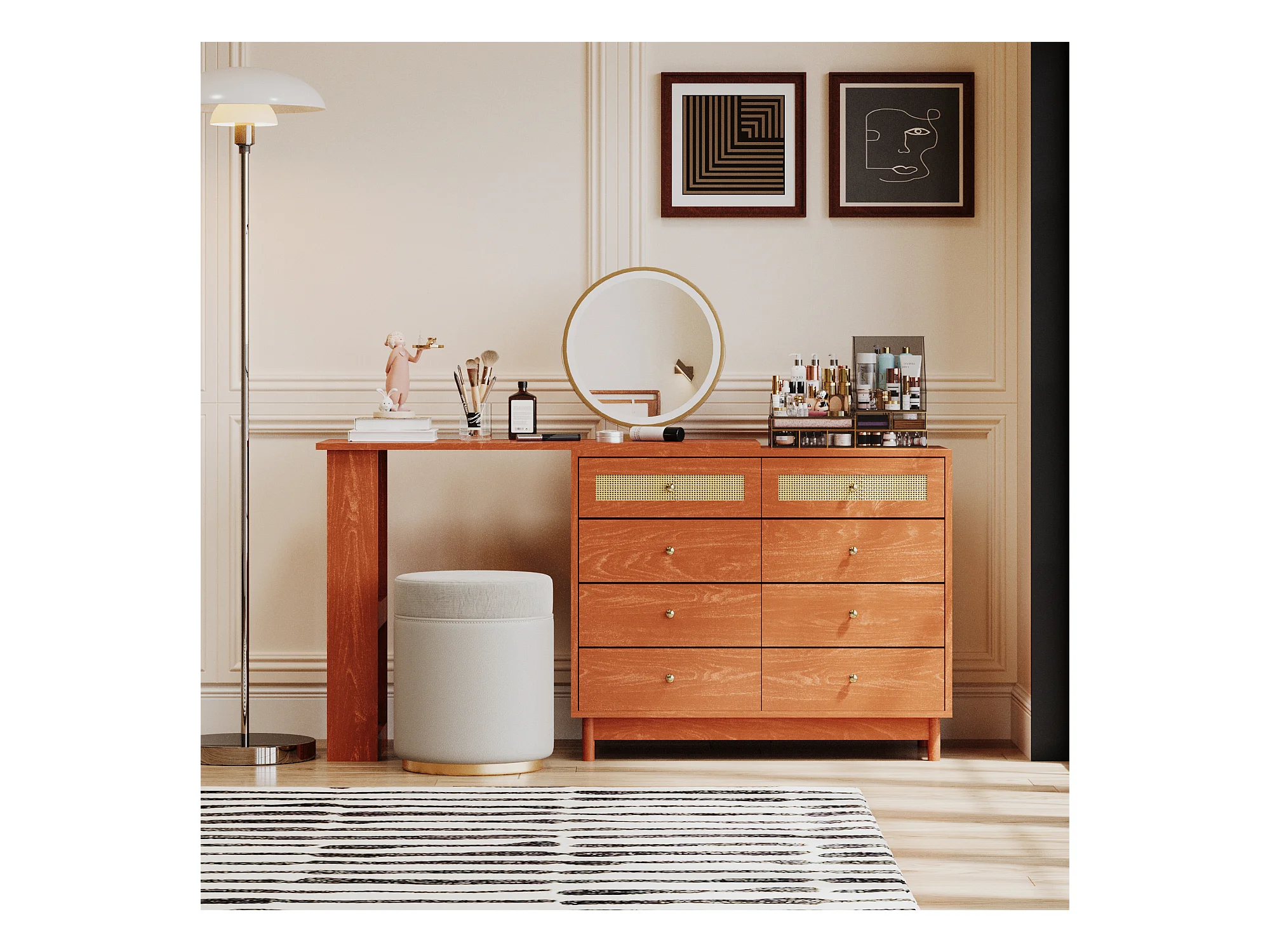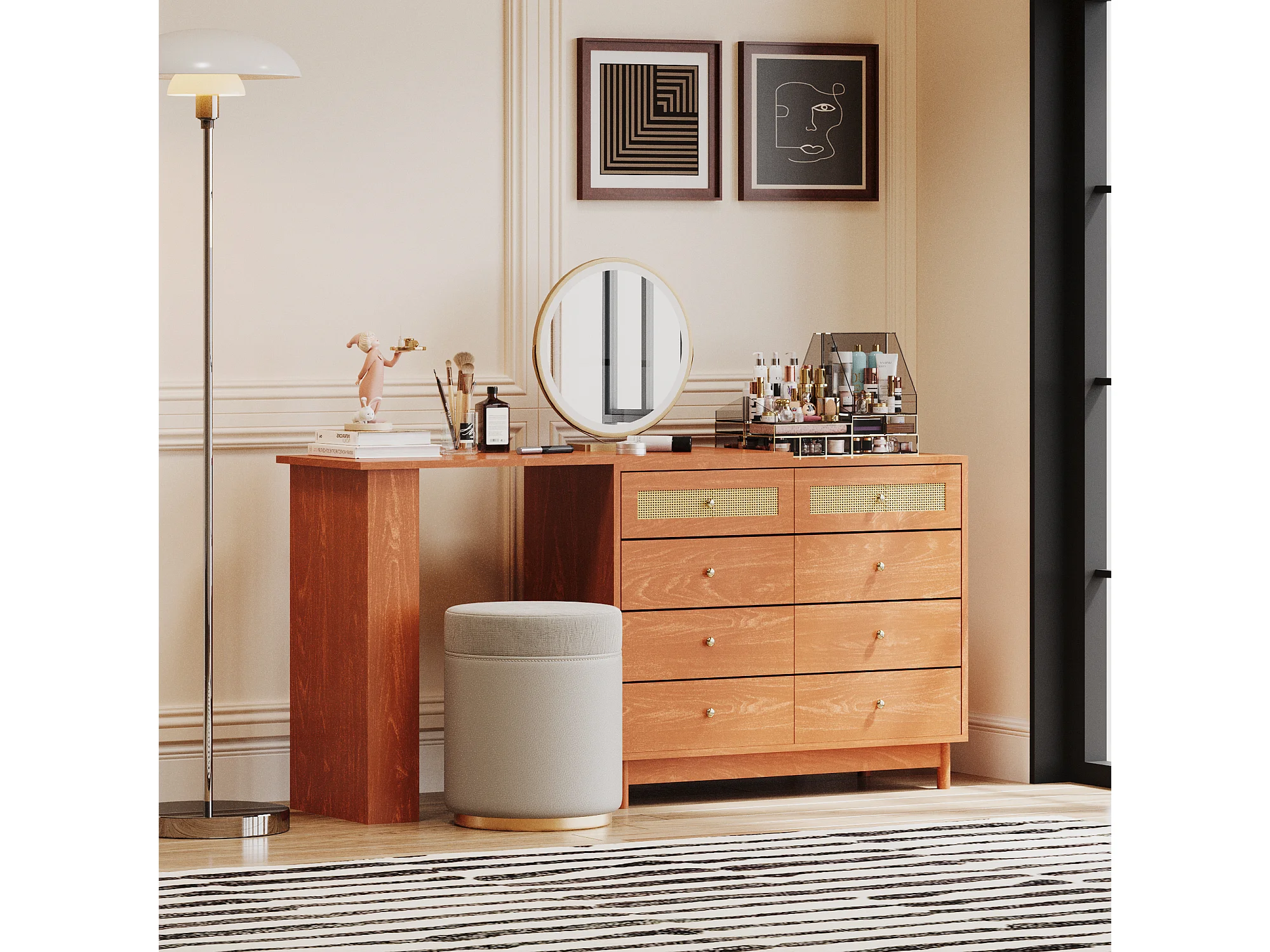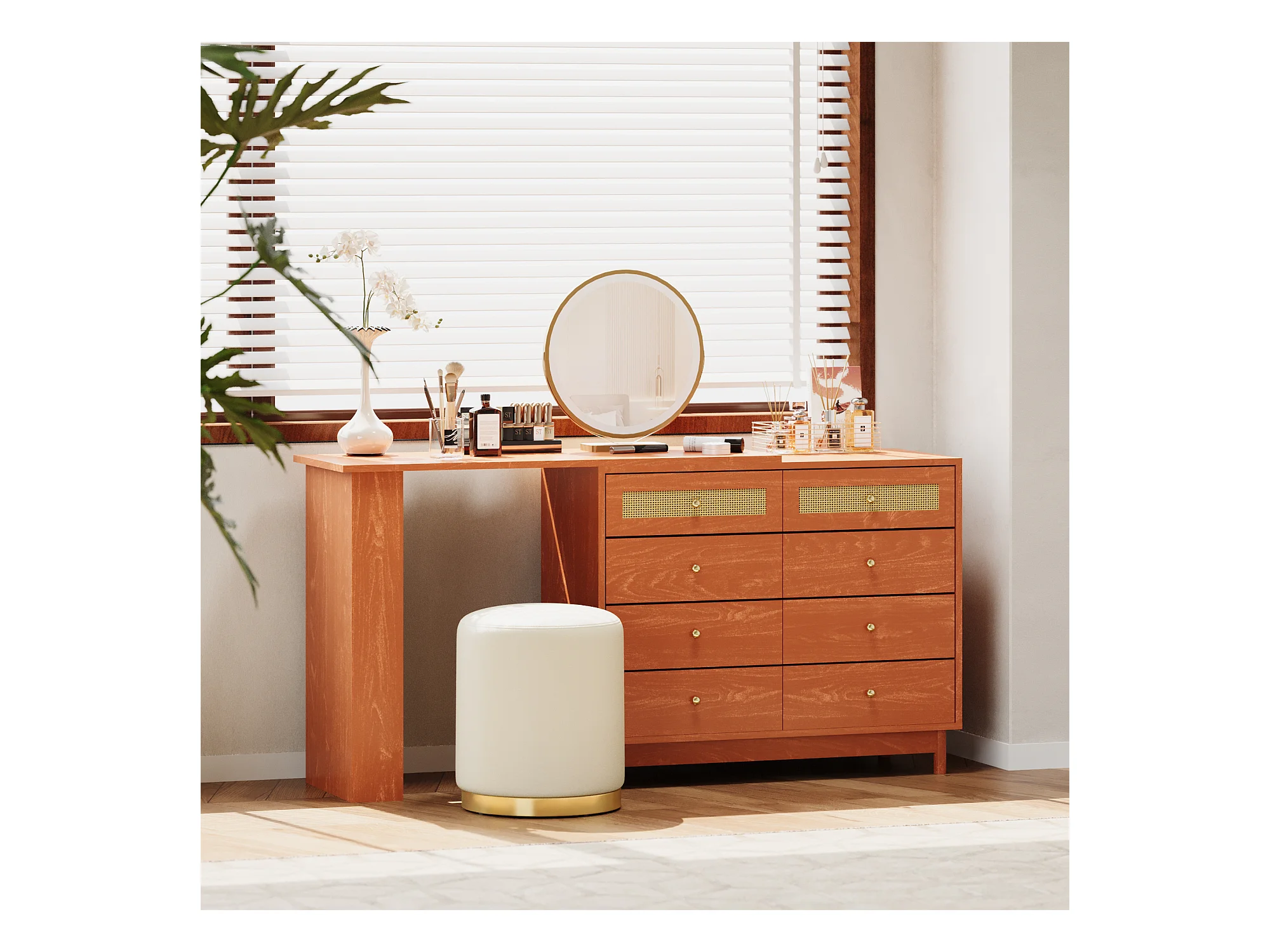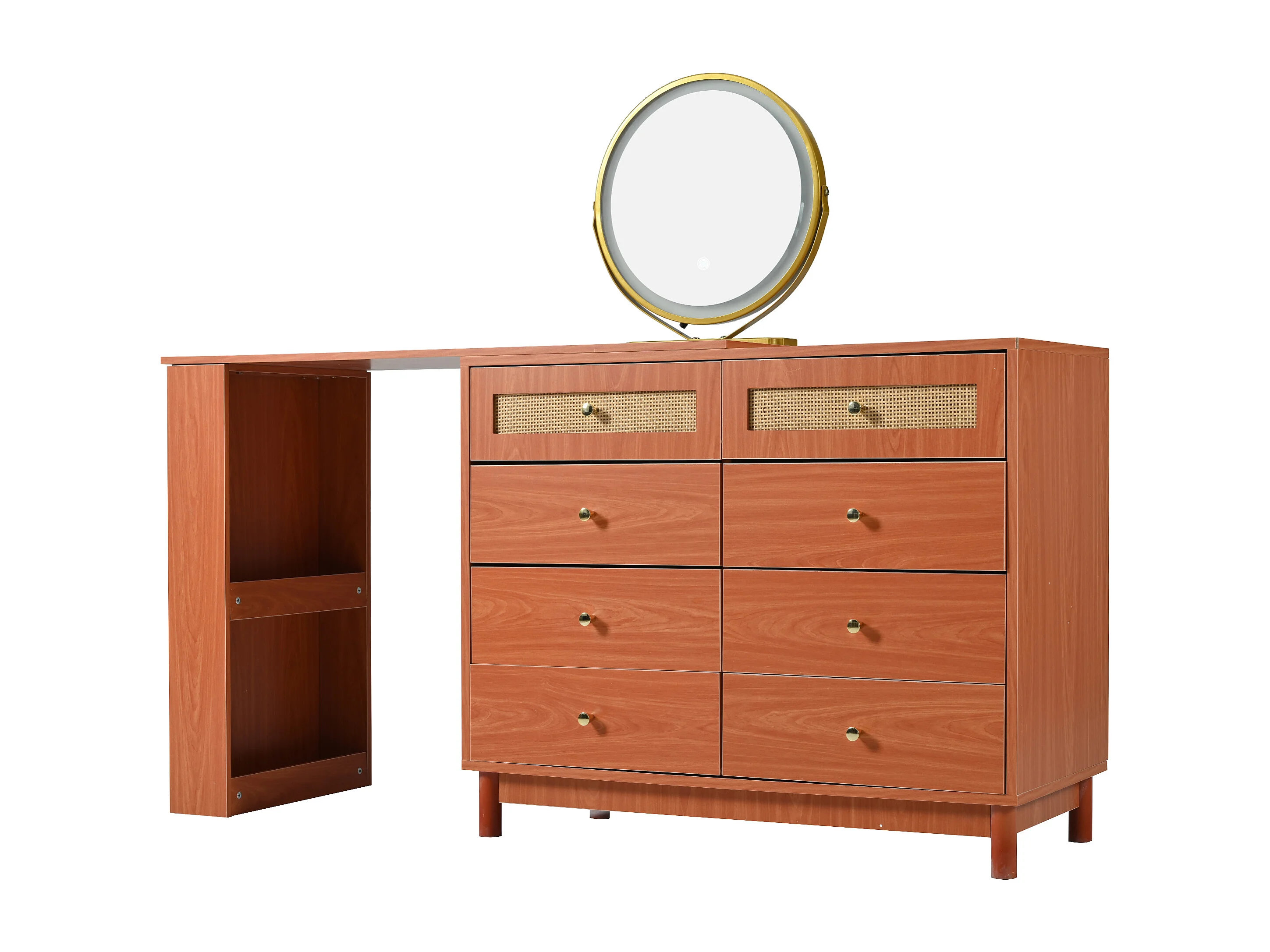 Coiffeuse avec miroir à LEDs et table pivotante 360° - 8 Tiroirs spacieux - Bois MDF - Noyer