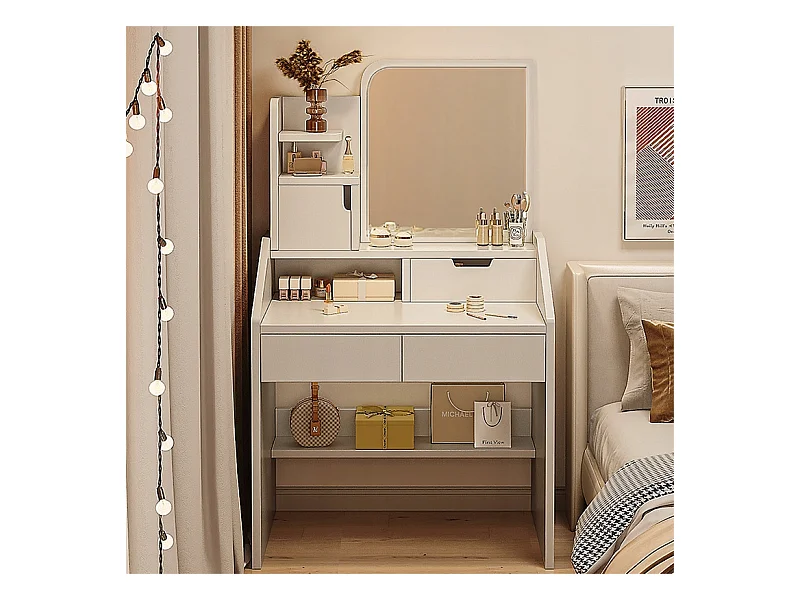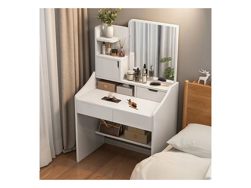 COiffeuse avec miroir pour maquillage, blanche, grande, style scandinave