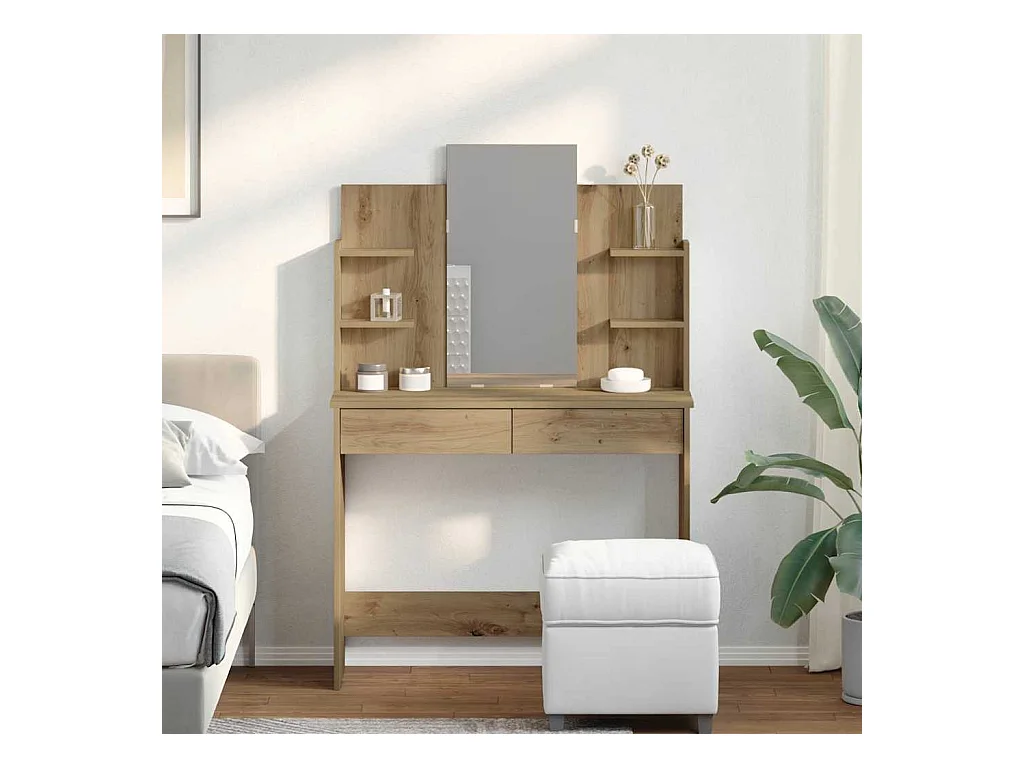 Coiffeuse avec miroir chêne artisanal 96x39x142 cm