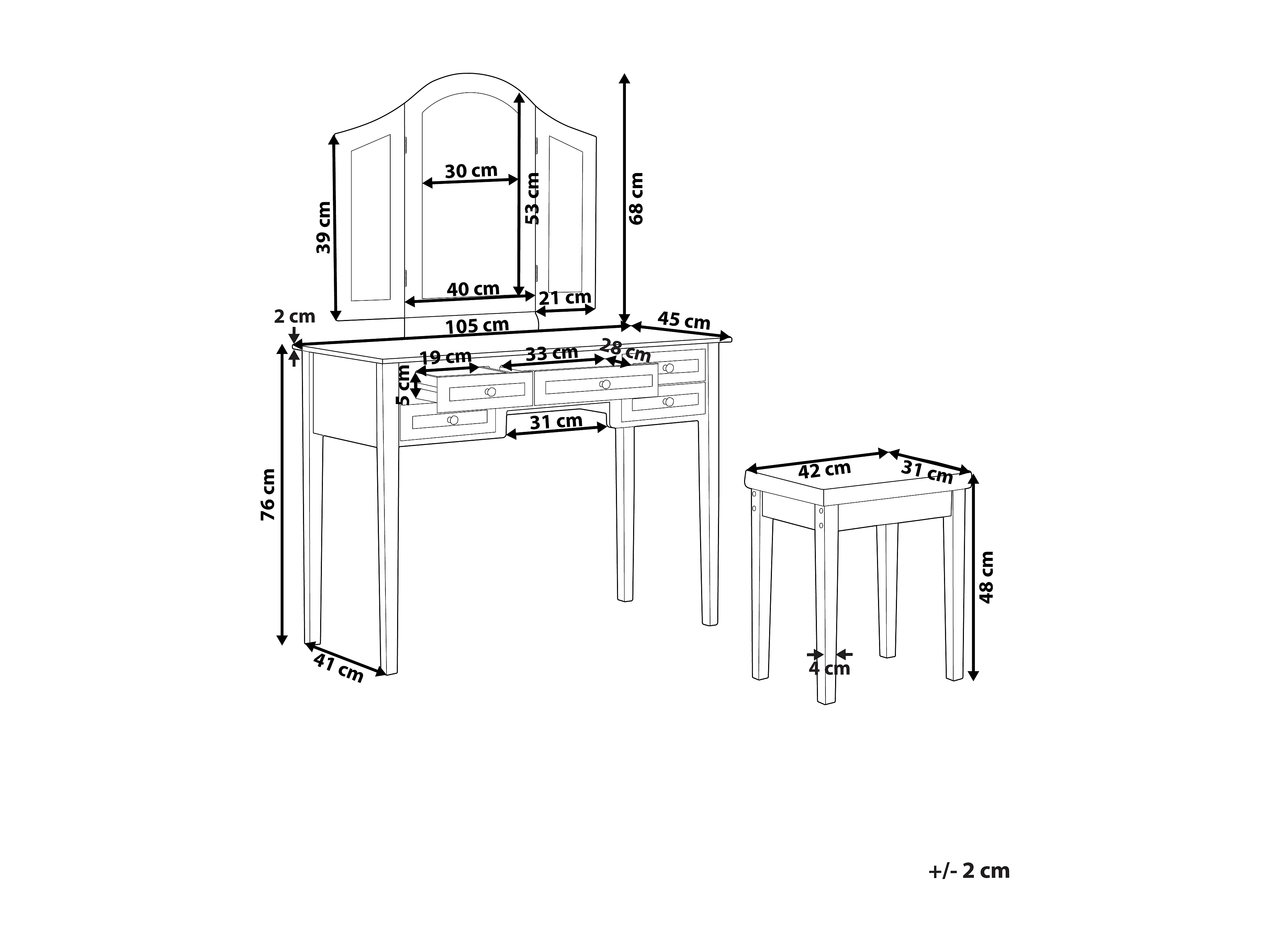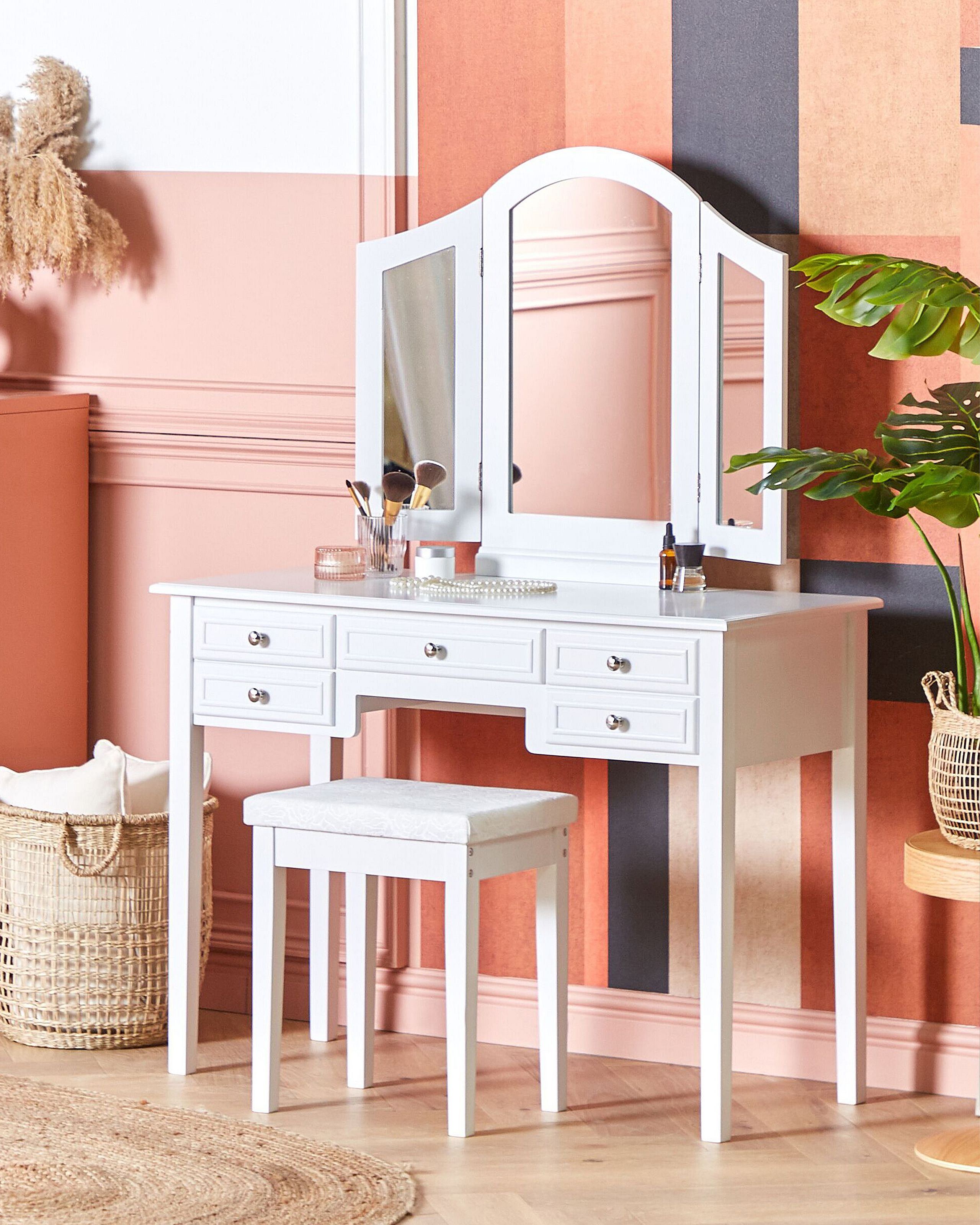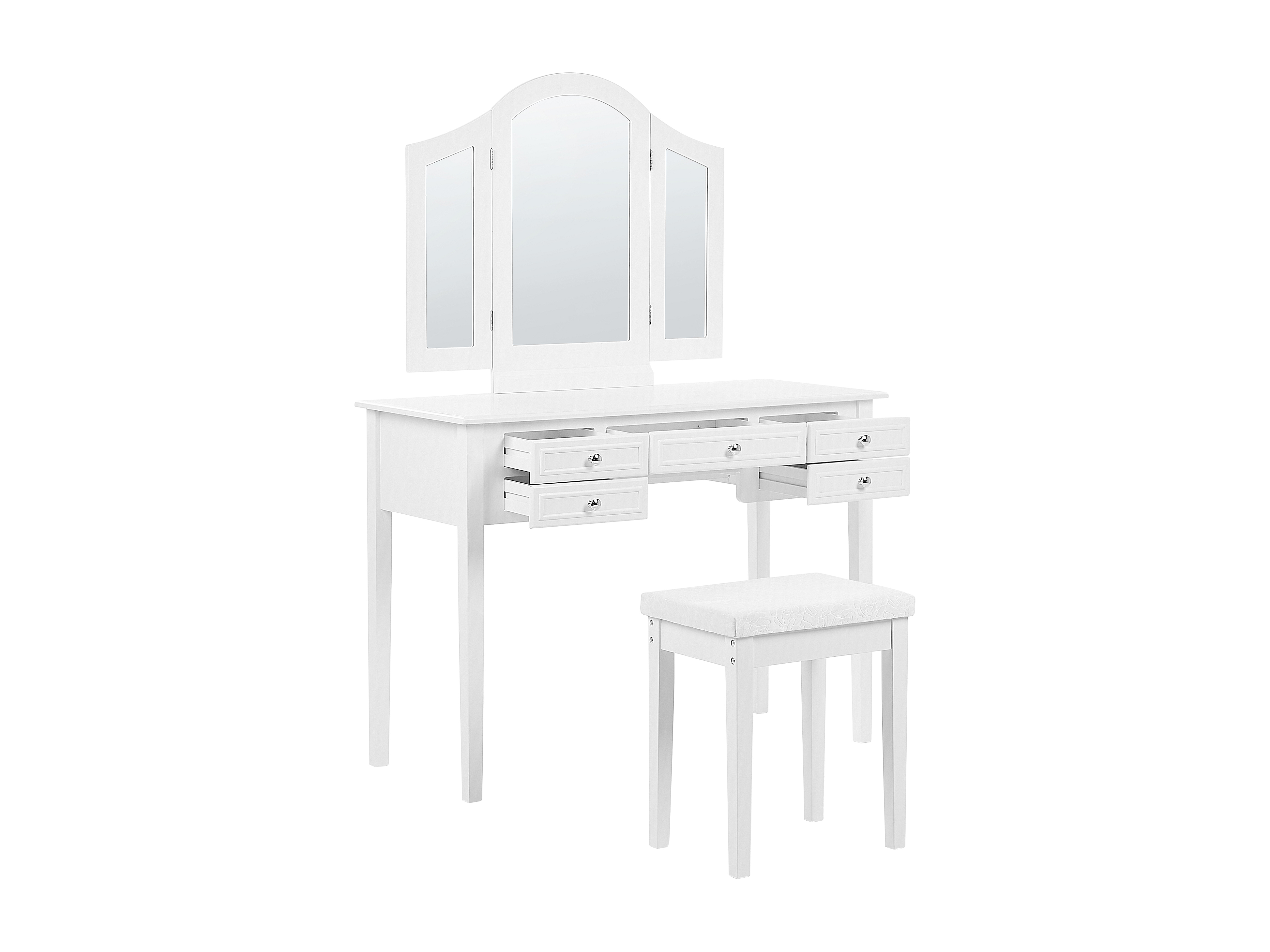 Coiffeuse avec miroir et tabouret DIVA Blanc