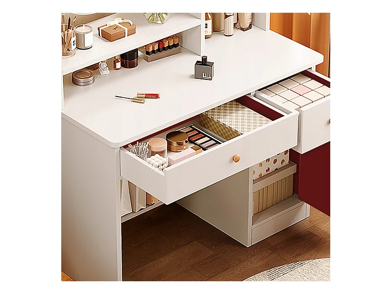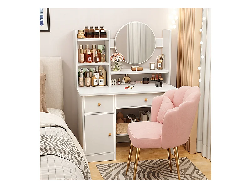 COiffeuse avec miroir et tiroirs, blanche, maquillage glamour scandinave, 100 cm