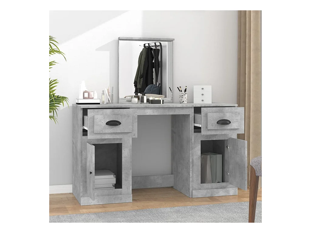 Coiffeuse avec miroir gris béton 130x50x132,5 cm FR314067