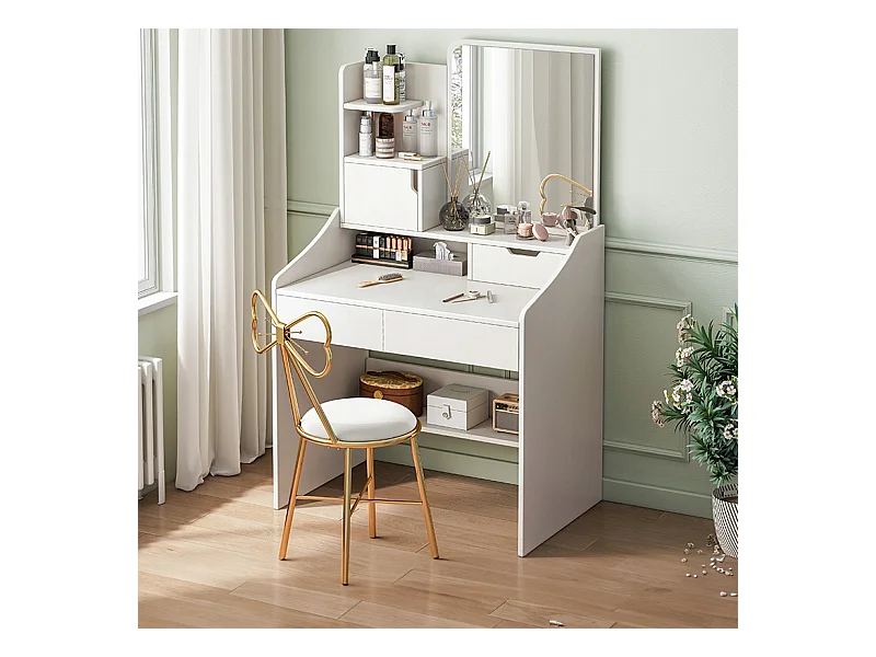 COiffeuse avec miroir pour maquillage, blanche, grande, style scandinave